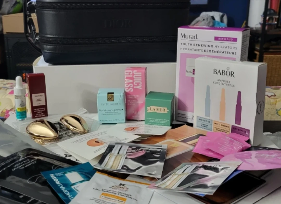Includes assorted beauty sample sachets or sample cards (see last picture.). Great for travel or trying new products!