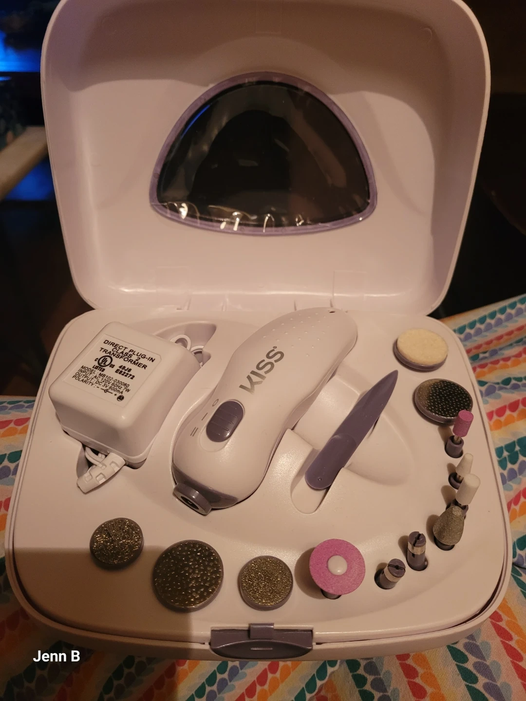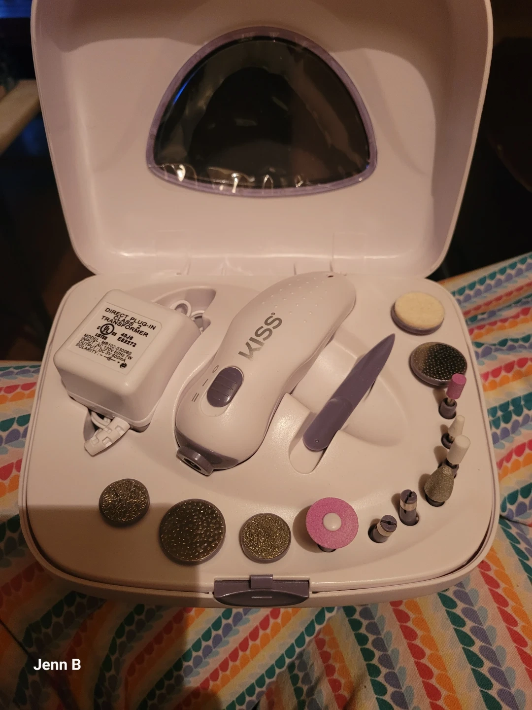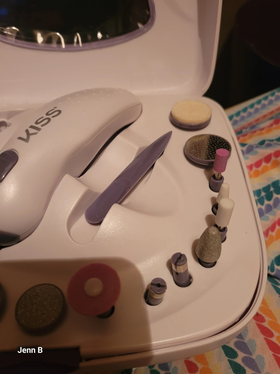 This KISS manicure and pedicure kit comes with a power unit and several attachments for nail care. It's designed for home use to achieve salon-quality results. Great for maintaining healthy-looking nails!