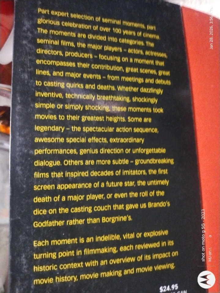 This book explores seminal moments in cinema over 100 years. It's categories cover films, major players and significant events. Each moment is reviewed in its historic context with an overview of its impact on movie history