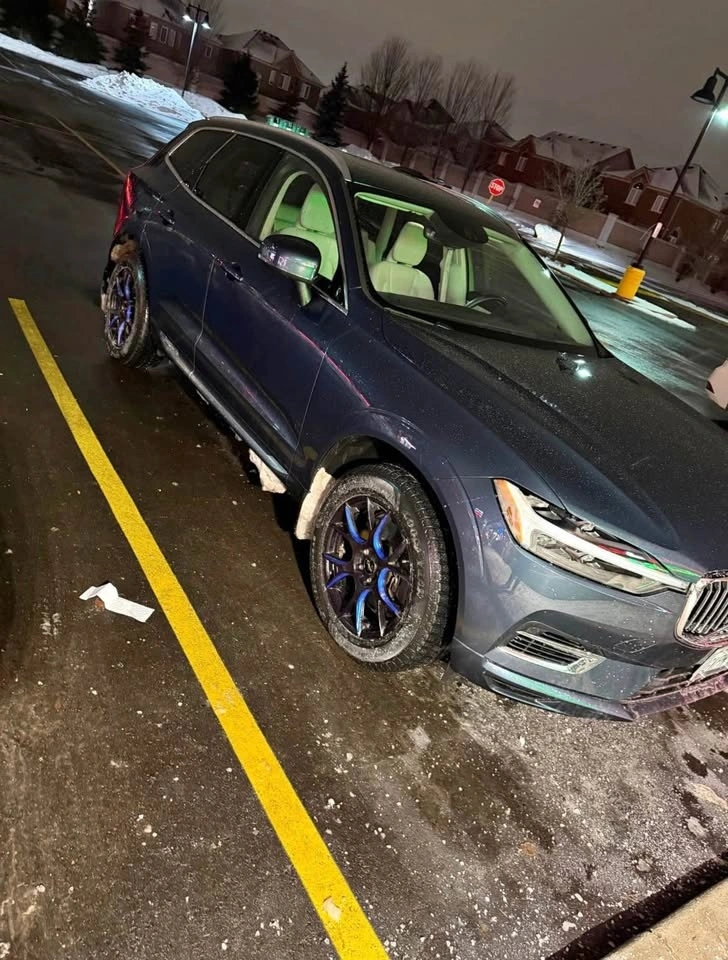 Set of 4 winter tires already mounted on stylish aftermarket rims. Rims are blue and black and look great installed. Tires have good tread remaining and were used only for winter driving.