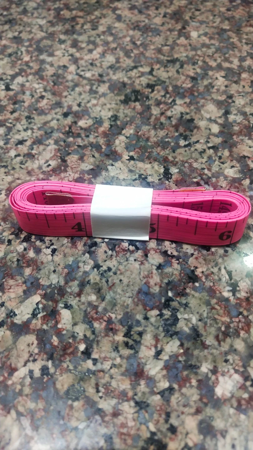 This is a bright pink sewing measuring tape. It's flexible and easy to use for various tailoring and craft projects. The tape measures in both inches and centimeters for versatile applications.