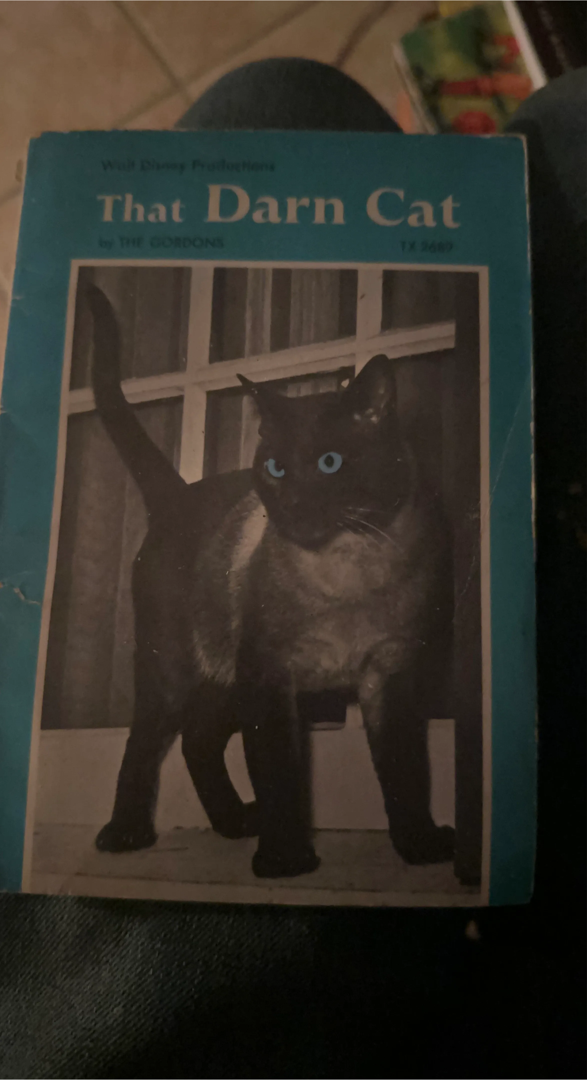Walt Disney Productions presents the book 'That Darn Cat' by The Gordons. This is a novelization of the classic Disney film. It's a fun read for cat lovers and Disney fans alike!