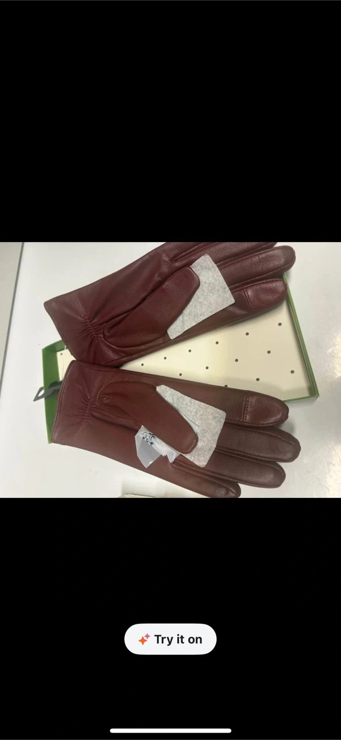 These are Kate Spade New York leather gloves. They come in a deep red colour and include the original box. Perfect for keeping your hands warm and stylish.