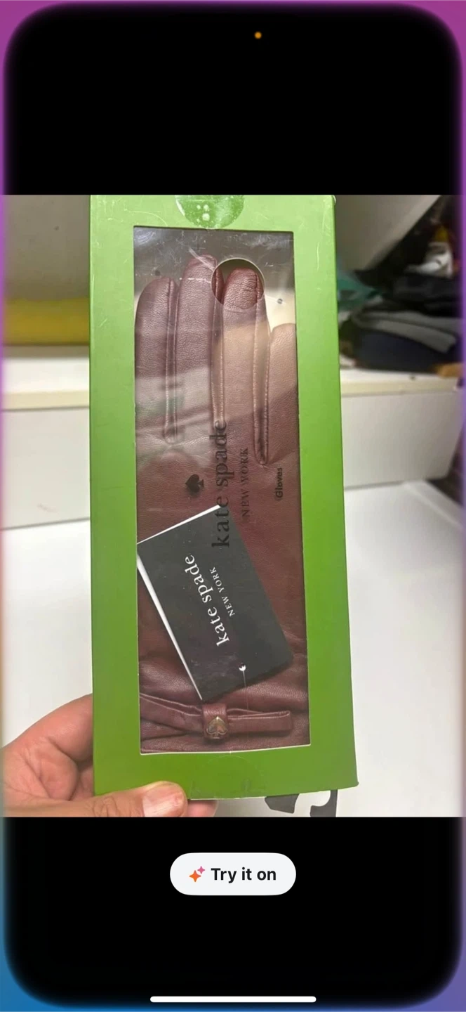 These are Kate Spade New York leather gloves. They come in a deep red colour and include the original box. Perfect for keeping your hands warm and stylish.