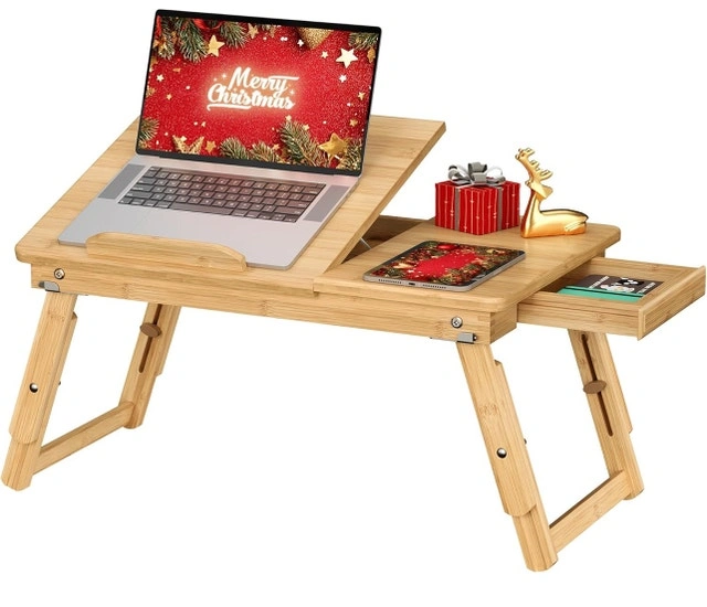 This brand new laptop bed desk is perfect for working or relaxing in bed, on the couch, or anywhere you need a convenient surface! It features a tilting top, a small drawer for storage, and foldable legs for easy storage. Its crafted from bamboo for a natural look. Adjustable Height: Yes, Material: Bamboo, Features: Tilting Top, Storage Drawer, Foldable Legs. If the ad is up, it's still available! Cash accepted.