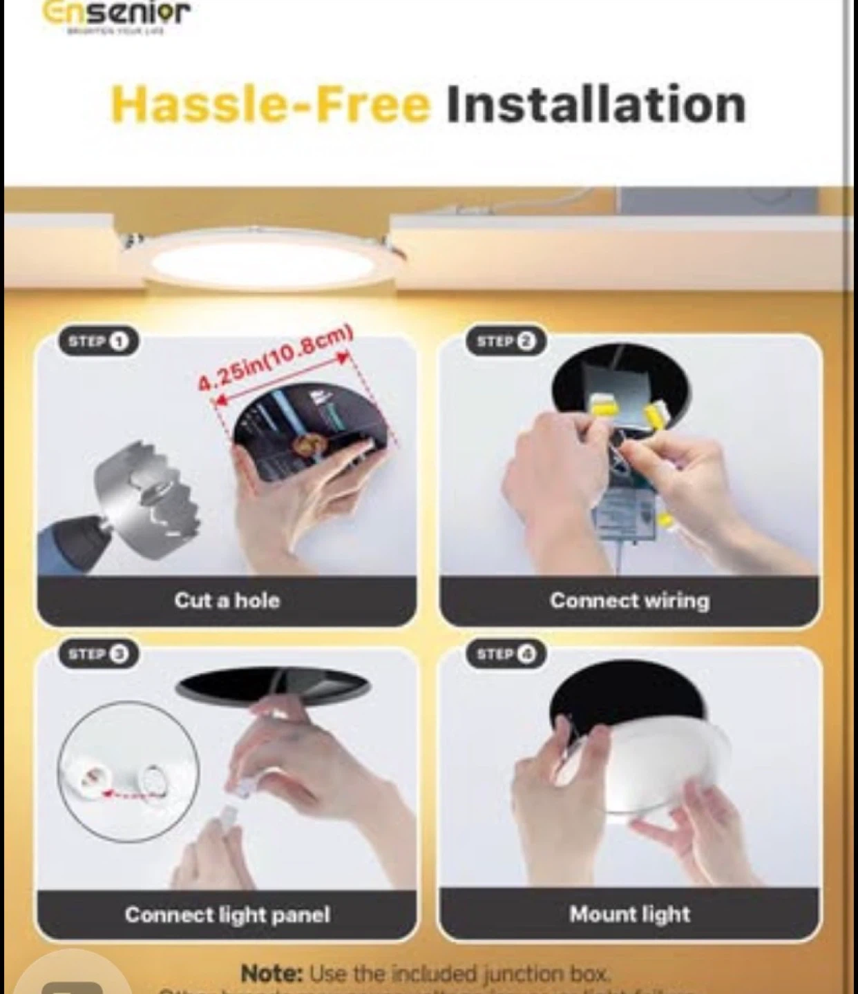 Ensenior 4Inch LED Recessed Slim Pot Light with Junction Box, 2700K/3000K/3500K/4000K/5000K Changeable, 9W 75W Eqv, Dimmable IC-Rated Ceiling Lighting, 750LM High Brightness (4 Pack) each