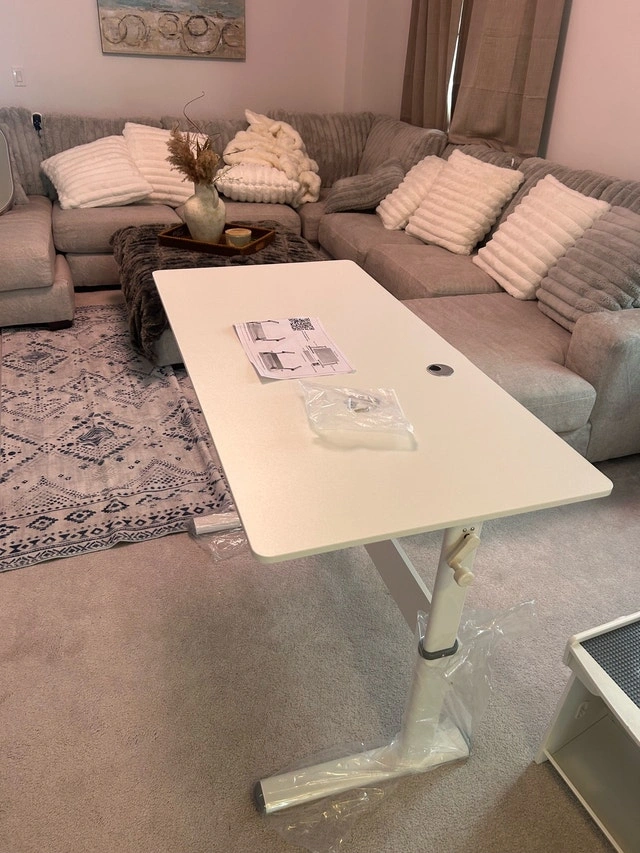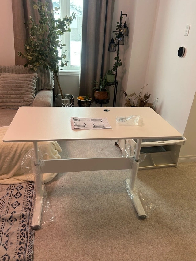 This brand new adjustable table is perfect for anyone needing versatility in their workspace. The smooth height adjustment mechanism allows for easy transitions between sitting and standing positions, promoting better posture and comfort. Its sturdy construction ensures durability, making it a reliable addition to any home or office. Key features: Adjustable Height, Sturdy Build, Modern Design. Maximum height is 34 inches. Length: 48 inches. Width: 24 inches. If the ad is up, it's still available!