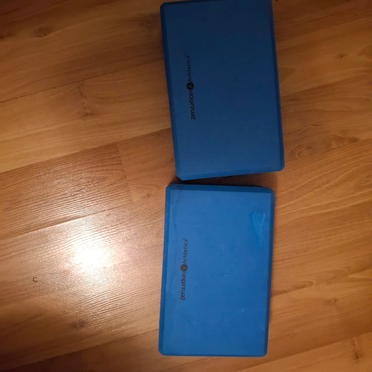 These blue Zenzation Athletics yoga blocks are made of dense foam. They're great for support and stability in various yoga poses. Essential for home or studio practice!