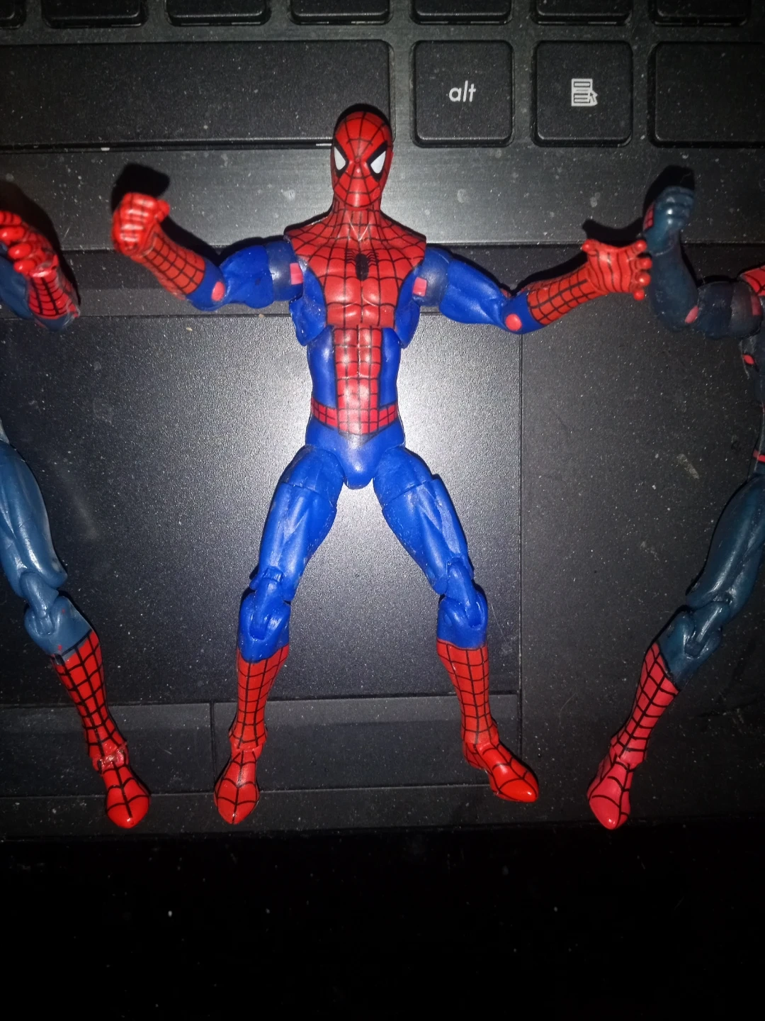 This is a Super Rare Marvel Universe Spiderman action figure with blue and red detailing. It's made of plastic. Multiple figures ,4 inch scale