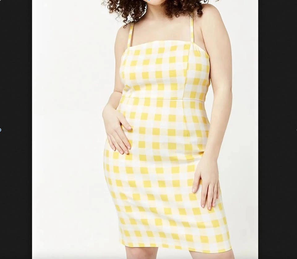Forever 21 Plus Yellow Gingham Bodycon Dress 2XL