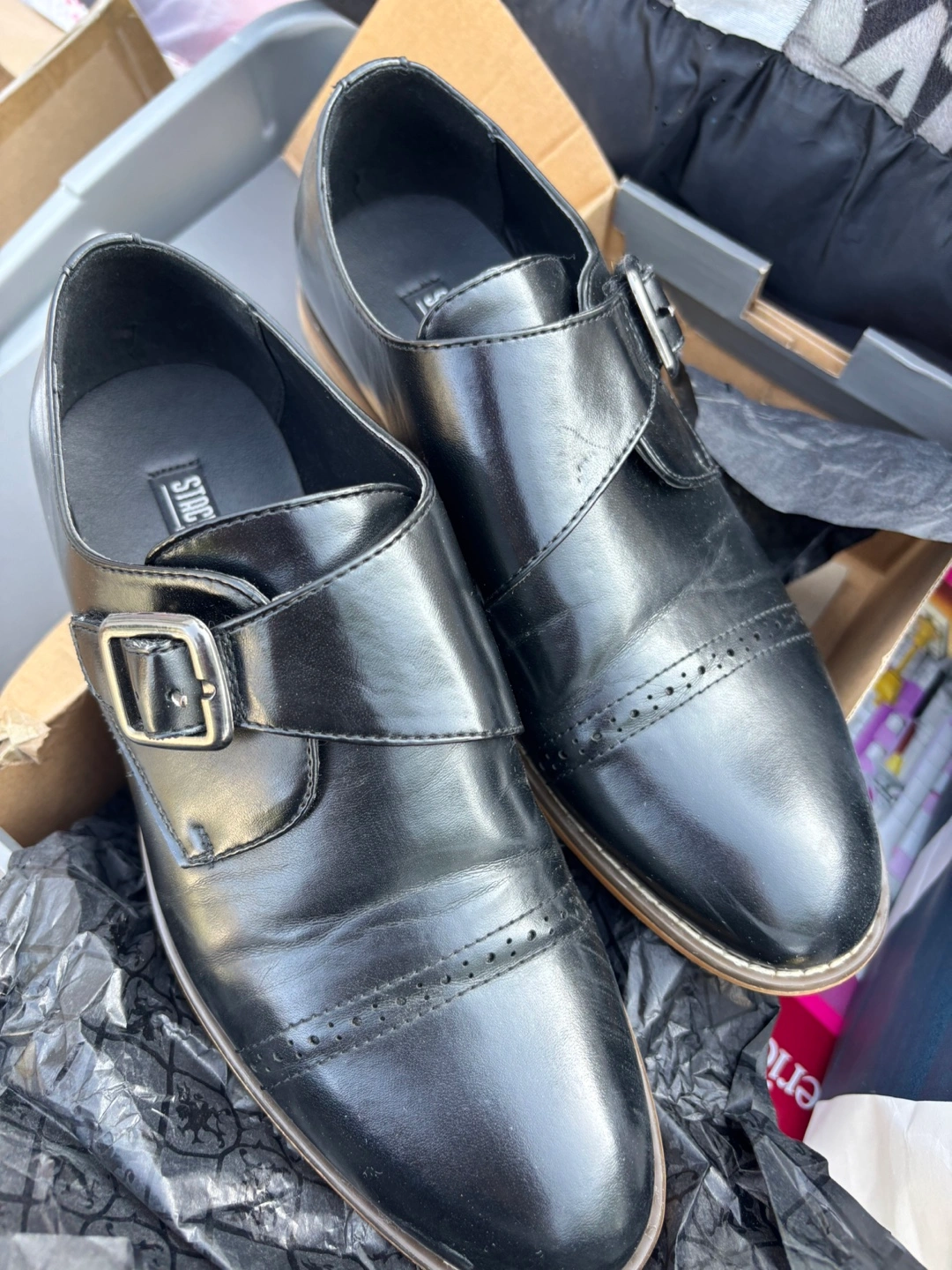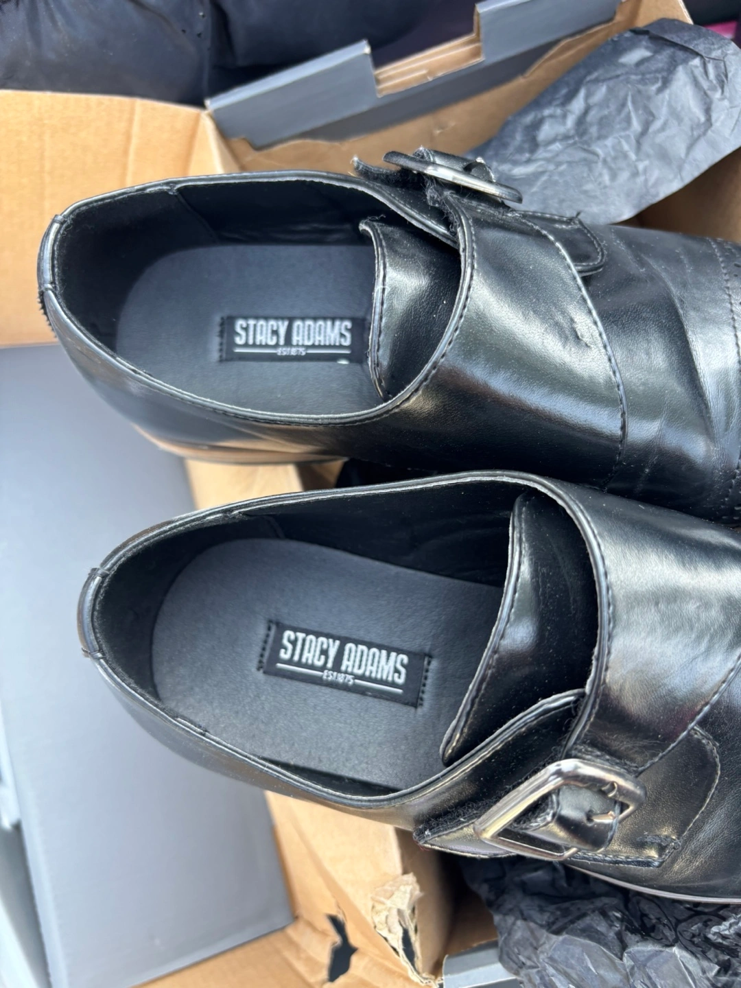 Selling a pair of Stacy Adams Desmond monk strap shoes in black. They are a size 5M. Originally bought for $60.00.