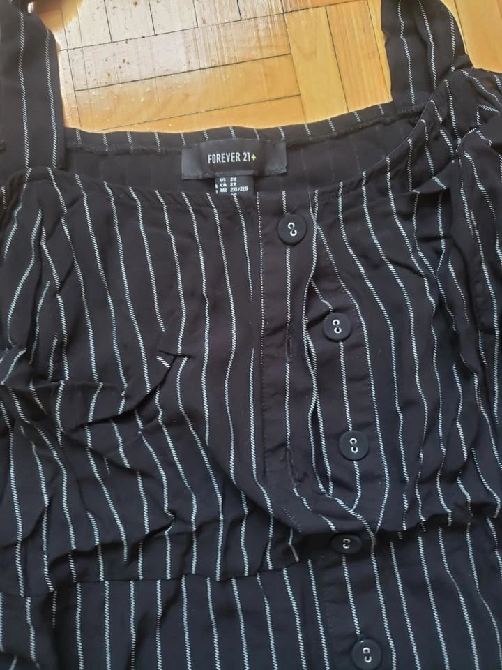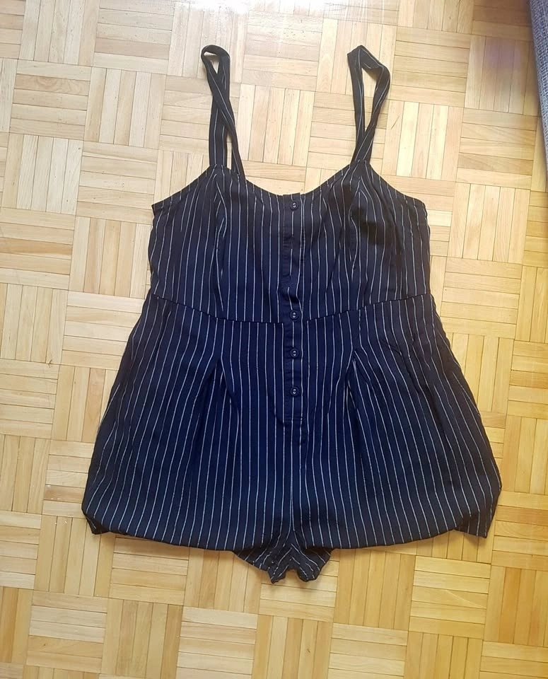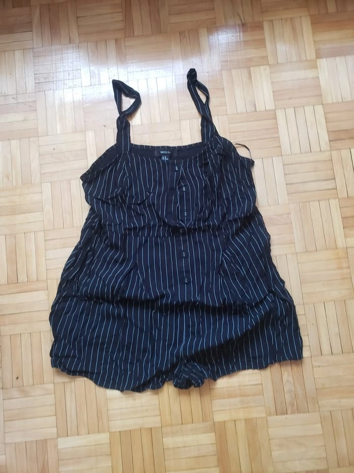 Forever21 pinstripe romper. Buttons in the front for easy on and off. Size 2XL. Bust: 20", Hips: 24", Length: 24". Bundle and save! Pick up near Queen and John.