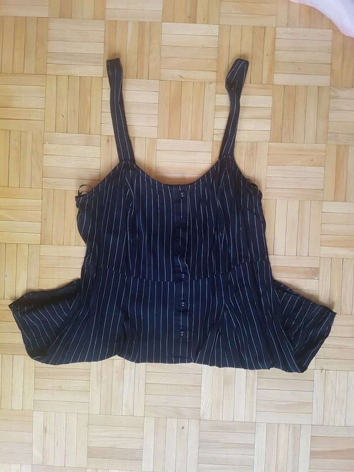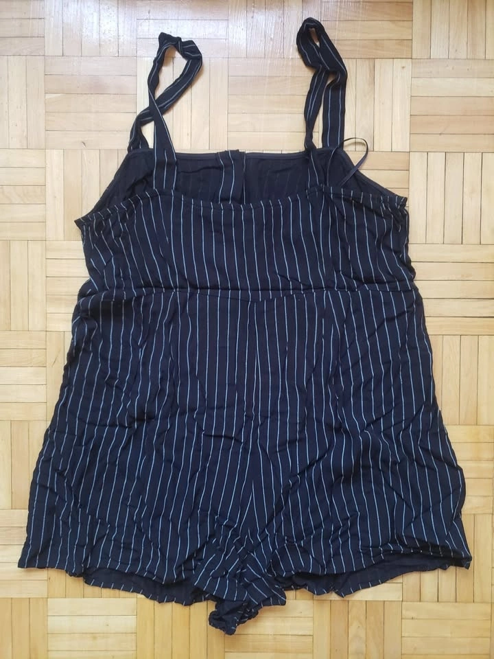 Forever21 pinstripe romper. Buttons in the front for easy on and off. Size 2XL. Bust: 20", Hips: 24", Length: 24". Bundle and save! Pick up near Queen and John.