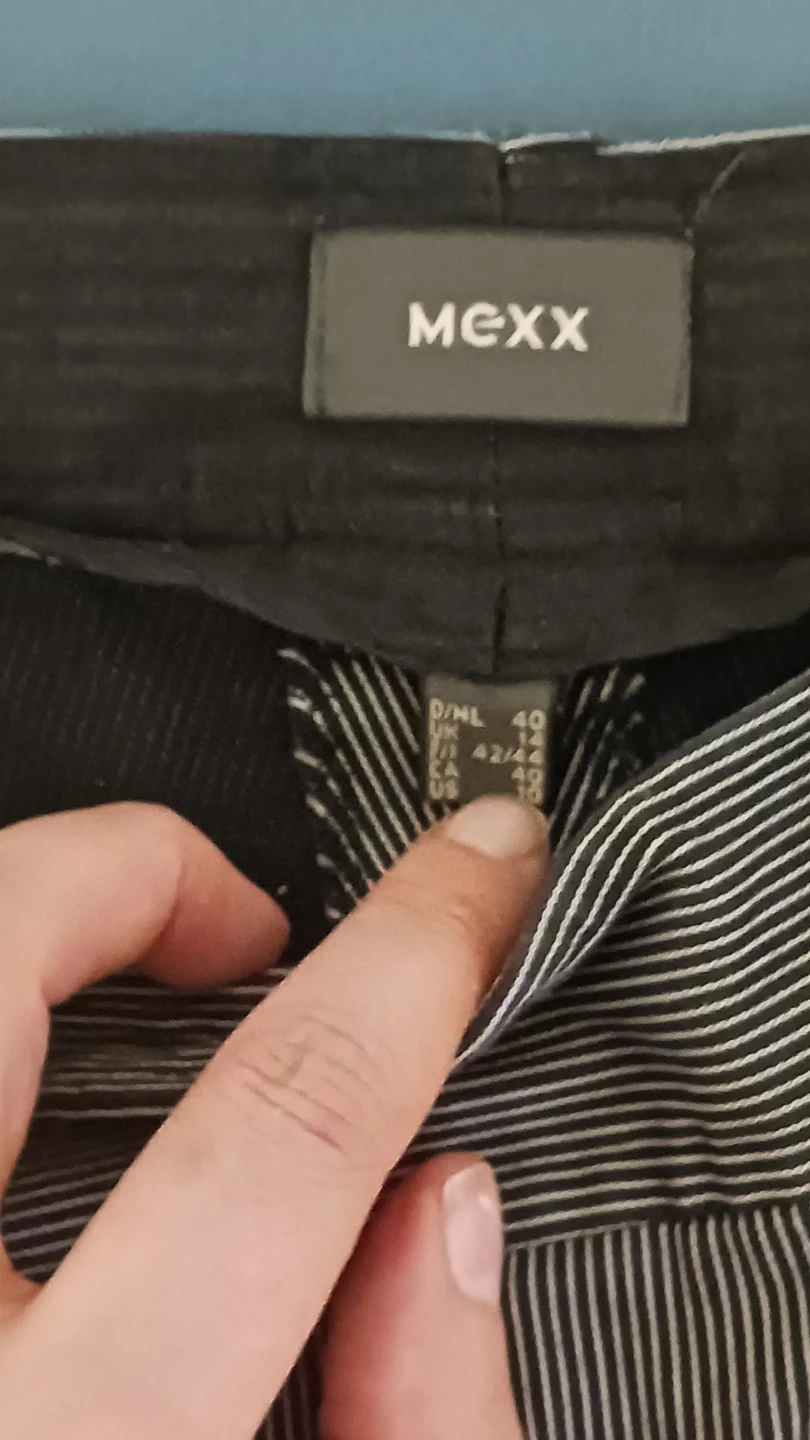 These MEXX trousers feature a classic pinstripe pattern. They're size 40 in D/NL sizing. The material appears to be a blend suitable for everyday wear.
