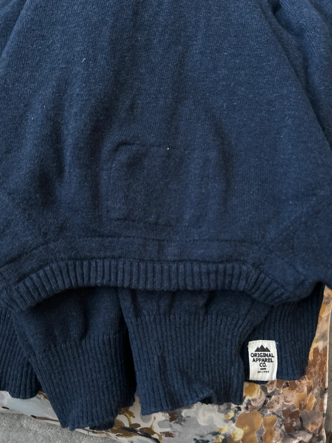 This Primark sweater is a size X Large and navy blue. It's made from a soft material, perfect for cooler weather. It fits also L size. Very warm inside! Only serious request please!