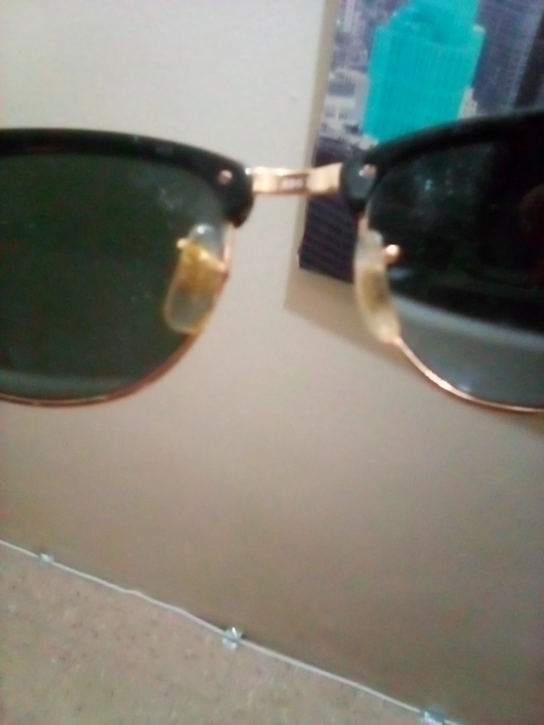 Classic Ray-Ban Clubmaster sunglasses in black and gold. Model RB 3016. These shades offer timeless style. Made in Italy.