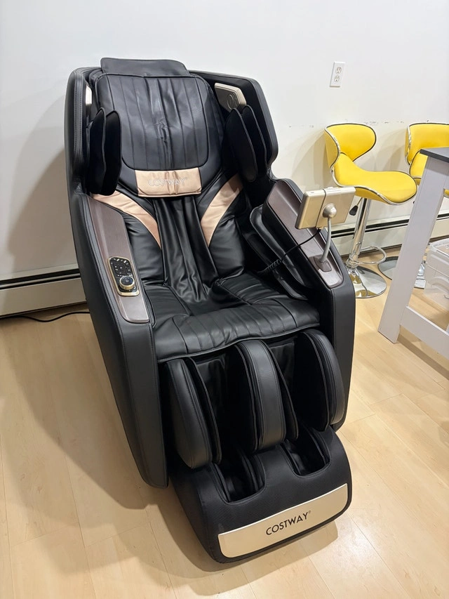 Costway JL10013 3D Massage Chair with Extended SL Track and Foot Rollers. Features 12 Automatic Modes including Thai Stretch, Zero-Gravity, and Intelligent Body Scanning. Full Body Air Massage with 37 air bags and 6 Massage Techniques. Includes LCD Touch Screen, Bluetooth speakers, and Negative Ions Therapy. Still under warranty. This chair comes from a clean, smoke-free, and pet-free home. I'm only selling because I'm leaving the country!