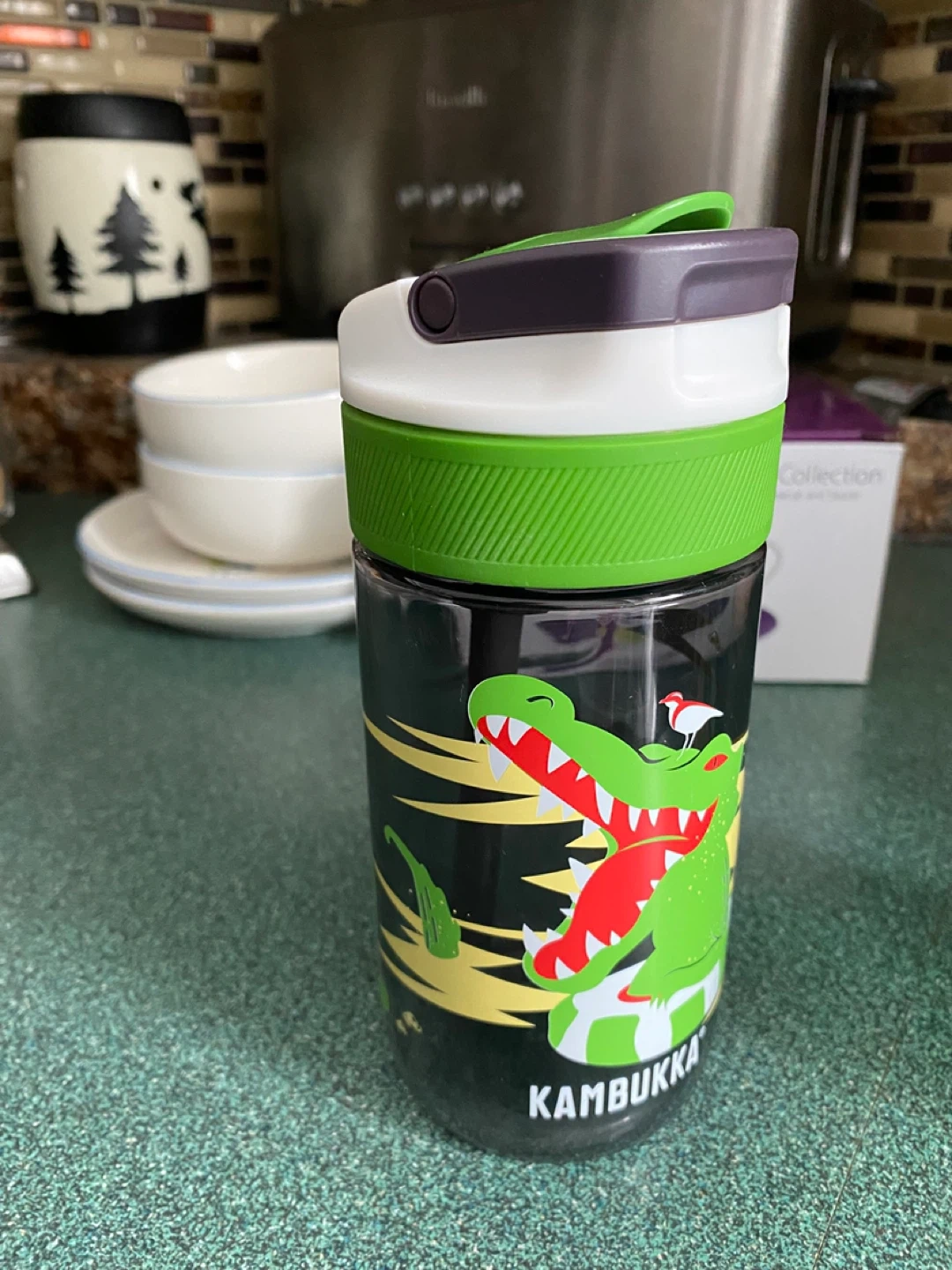 Kambukka water bottles with fun animal designs. They're great for kids' lunches or activities. These bottles are BPA-free and designed for easy use.