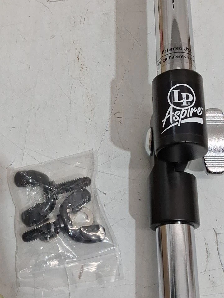 This is a Latin Percussion (LP) Aspire Slide Mount Bongo Bracket in chrome, perfect for adding bongos to your setup!