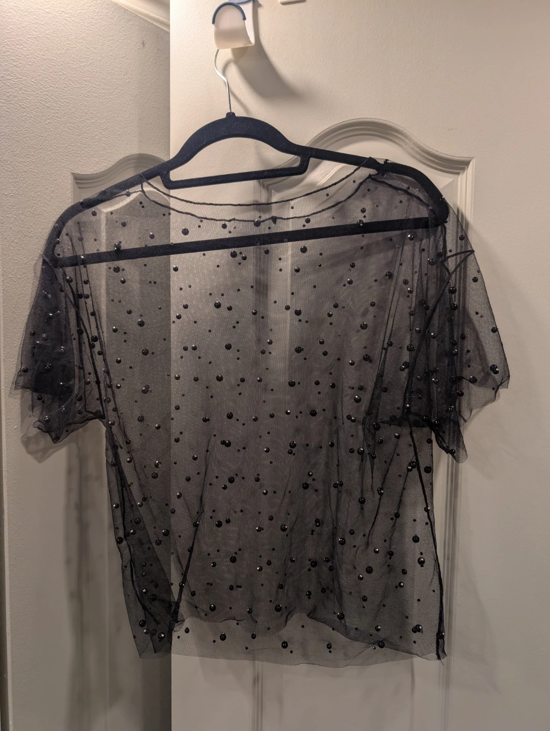 Buy & SellBlack Mesh Beaded Sheer Top M/LBlack Mesh Beaded Sheer Top M/L$10Sheer black mesh top w beading. Short sleeves and a round neckline. M/LConditionLike newTallaM/LWHERE TO MEETYork Mills StationView MapSELLERLiza KSt.Andrew878 reviews0 chats·0 favorites·3 viewsSEND CHAT TO SELLERHi Liza K! I’m interested in your listing.Hi Liza K! I’m interested in your listing.Get the Karrot app to chatSign In to chat