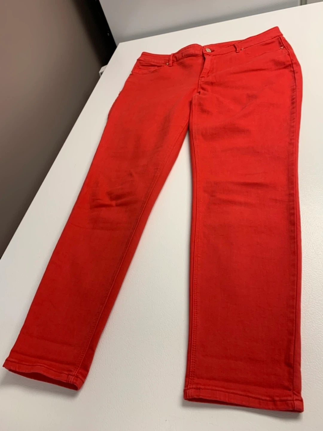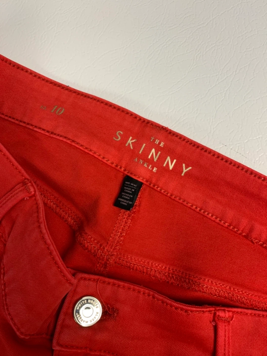 Looking for something Red to wear for Valentines these White House Black Market skinny ankle jeans are a vibrant red colour. They are a size 10. These jeans would be great for adding a pop of colour to any outfit!