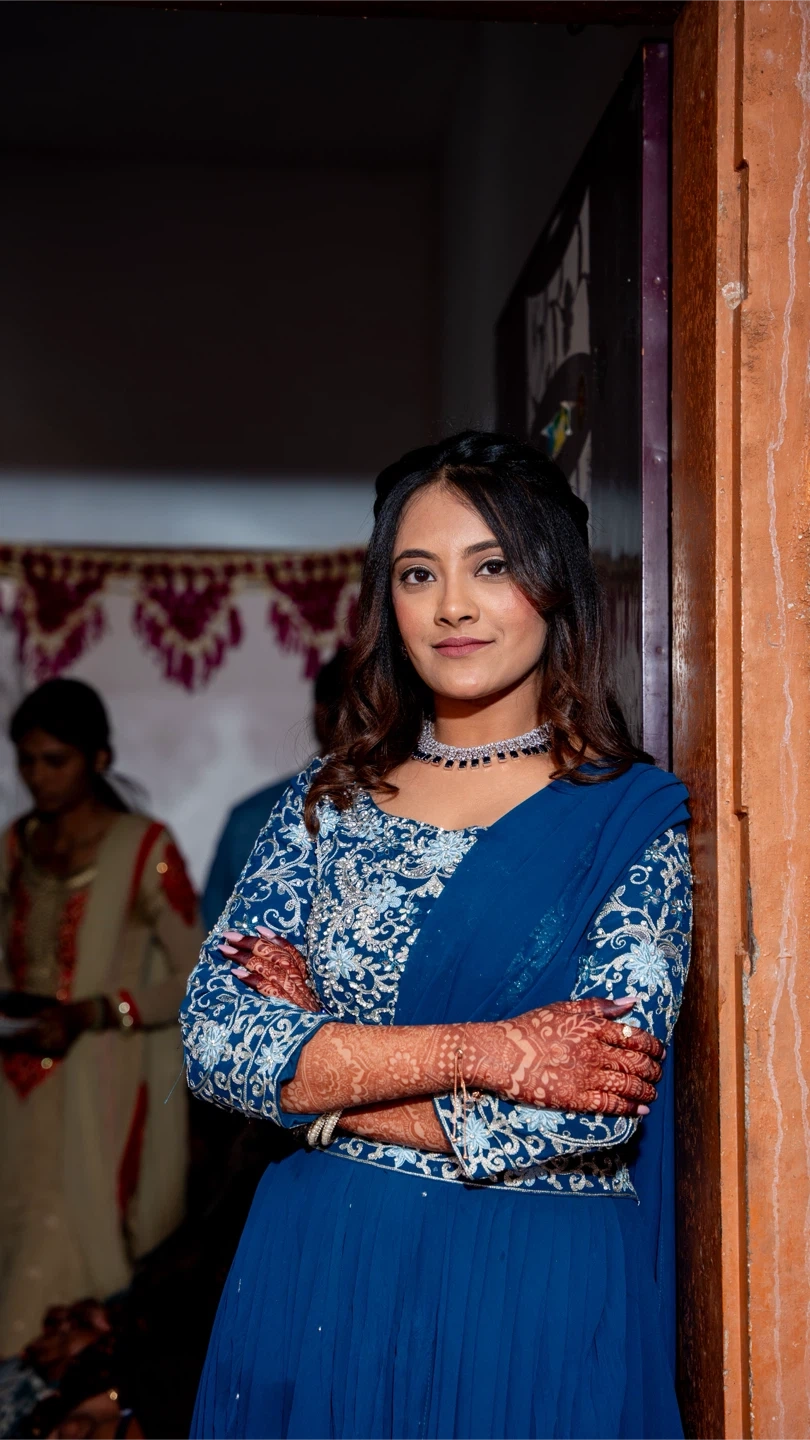A timeless statement piece designed for those who appreciate fine detailing and effortless elegance. Comes with matching blue and white diamond jewellery set.