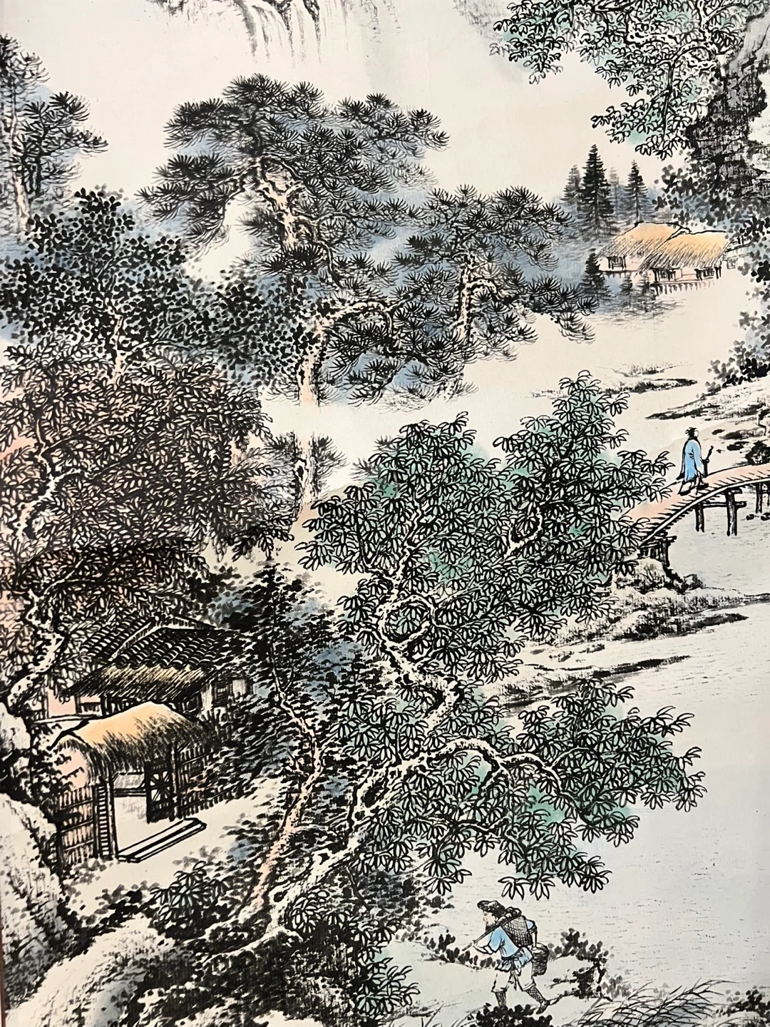 A set of two traditional Chinese landscape paintings on scrolls. These artworks depict serene natural scenes with mountains, water, trees, and figures. They're beautiful decorative pieces for any home or office space.