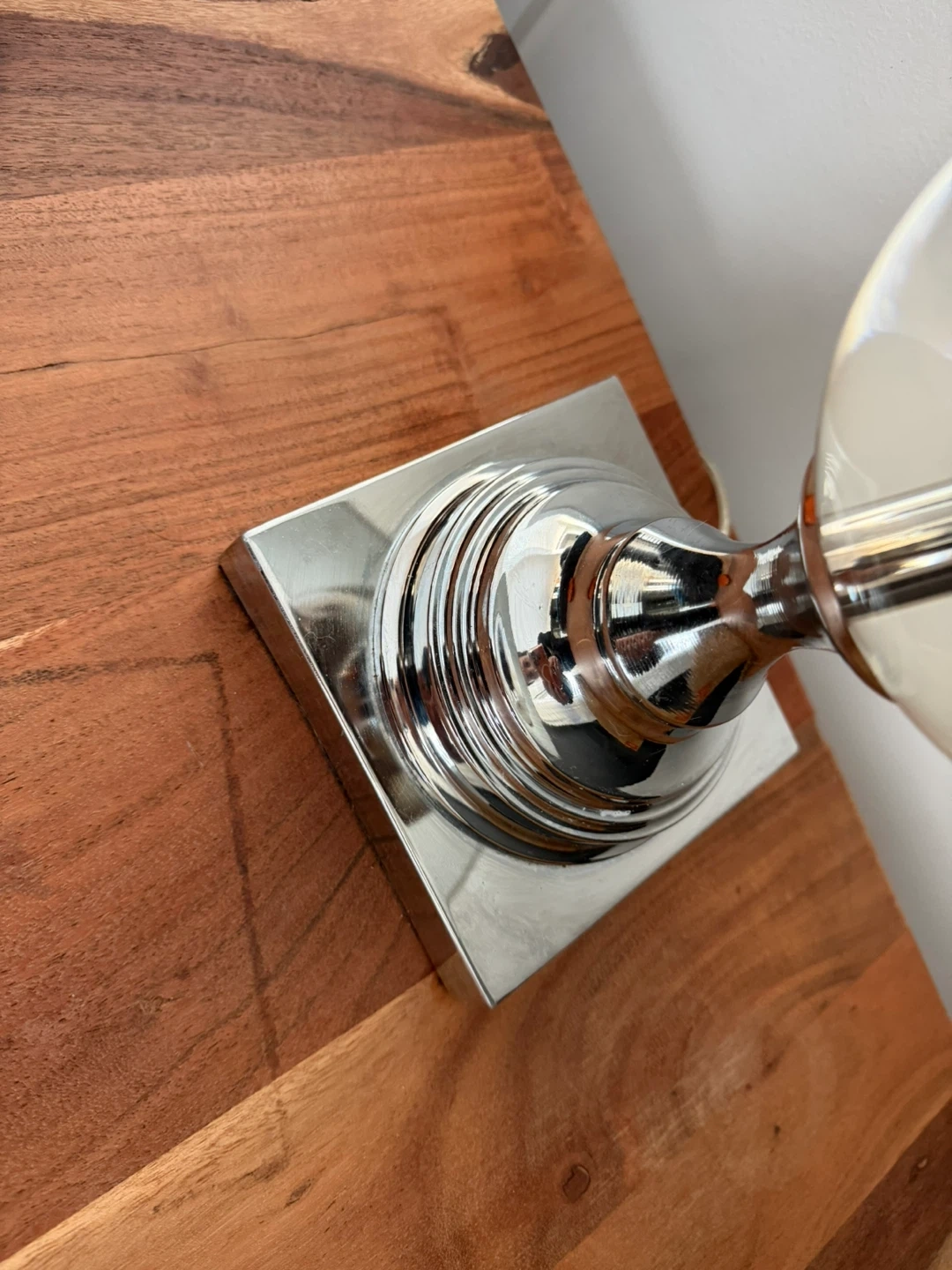 This stylish table lamp features a chrome base with a clear crystal orb accent. It has a simple white drum shade. The lamp's modern design adds a touch of elegance to any room. It's perfect for a bedside table or living room accent. Shades are all dirty. Two lamps. Open to negotiations. $25 each lamp. Final sale.