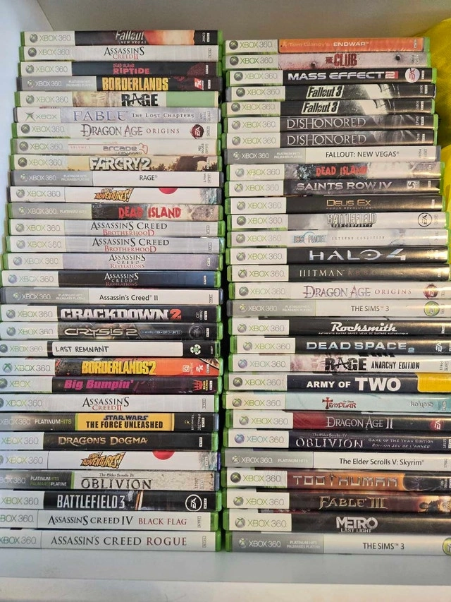 Selling Xbox 360 games for $5 each, except for the ones in the last picture. Pickup available in Etobicoke (451 The West Mall) or Brampton (10886 Hurontario). Most of these games are compatible with newer Xbox consoles. Also have good official Xbox 360 controllers for $25-30 each. Open to trading a bunch for newer games or higher value items. Check out my other listings for more gaming stuff.