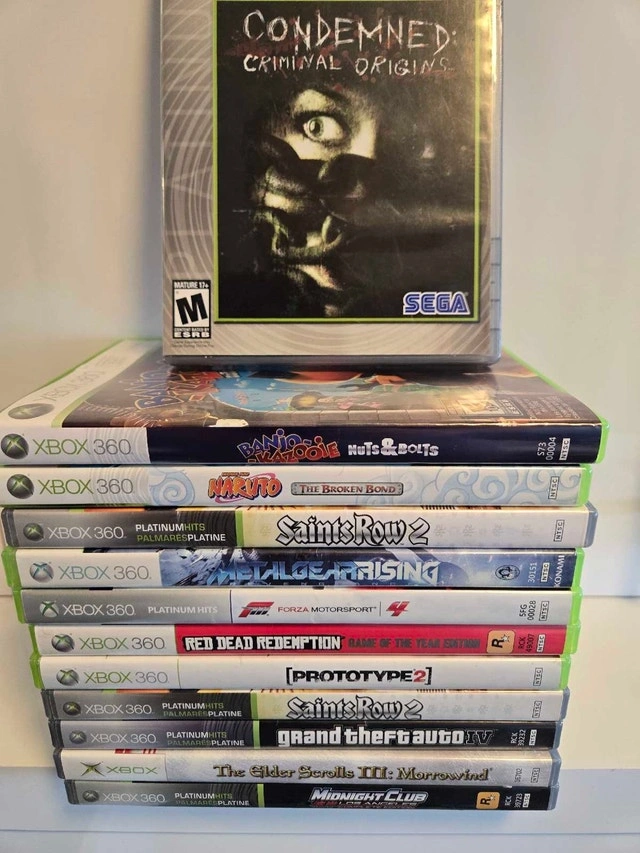 Selling Xbox 360 games for $5 each, except for the ones in the last picture. Pickup available in Etobicoke (451 The West Mall) or Brampton (10886 Hurontario). Most of these games are compatible with newer Xbox consoles. Also have good official Xbox 360 controllers for $25-30 each. Open to trading a bunch for newer games or higher value items. Check out my other listings for more gaming stuff.