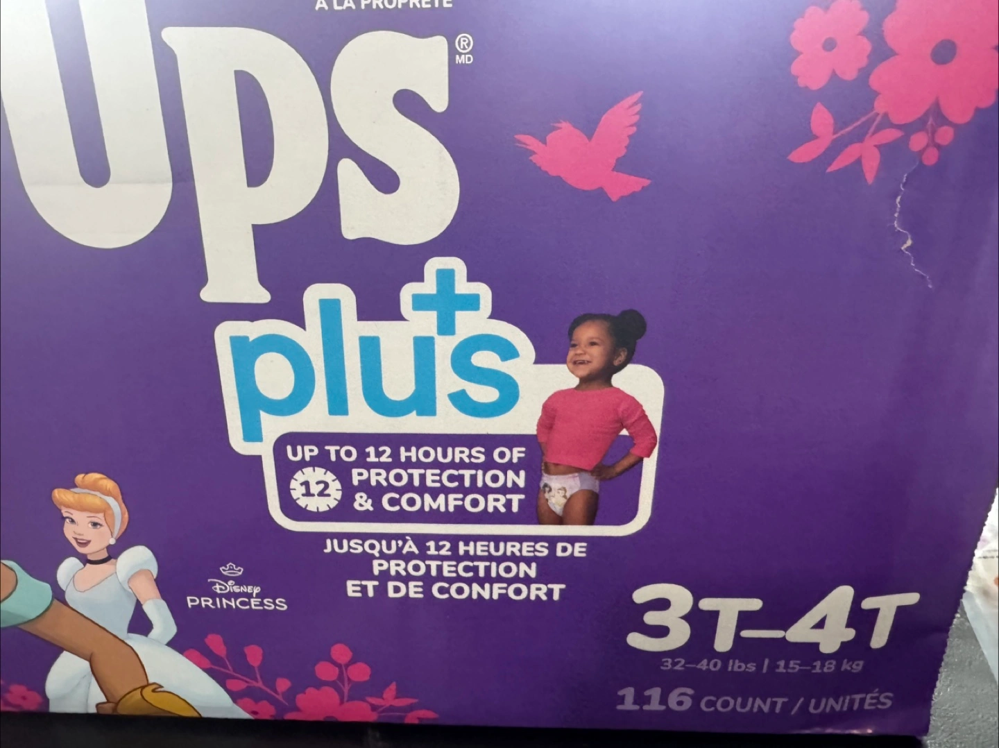 These Huggies Pull-Ups Plus are designed for potty training. They offer up to 12 hours of protection and comfort. This box contains 116 units and is sized for 3T-4T toddlers, fitting 32-40 lbs or 15-18 kg.
