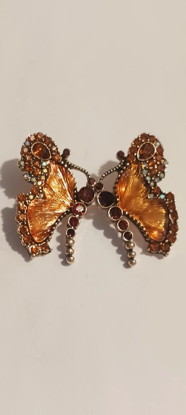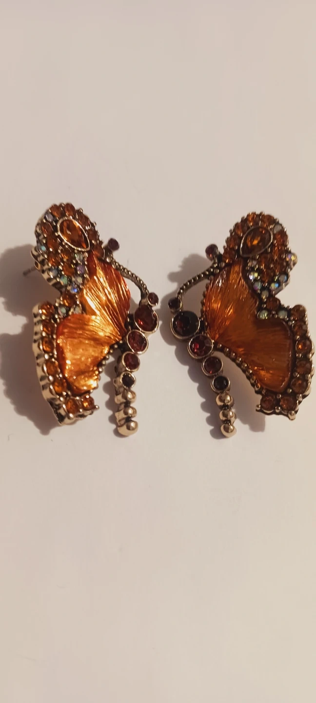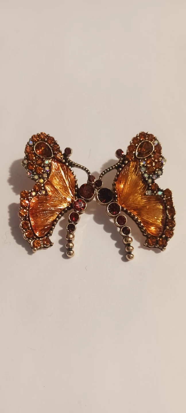 New !! Gorgeous Unique butterfly shaped earrings adorned with sparkling rhinestones. It's crafted with an orange enamel finish and features intricate detailing. 1.5"×1". New !! ALL MY PRICES ARE NEGOTIABLE !!