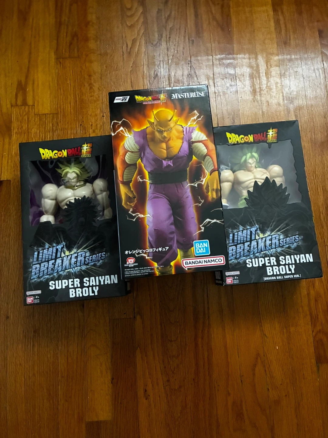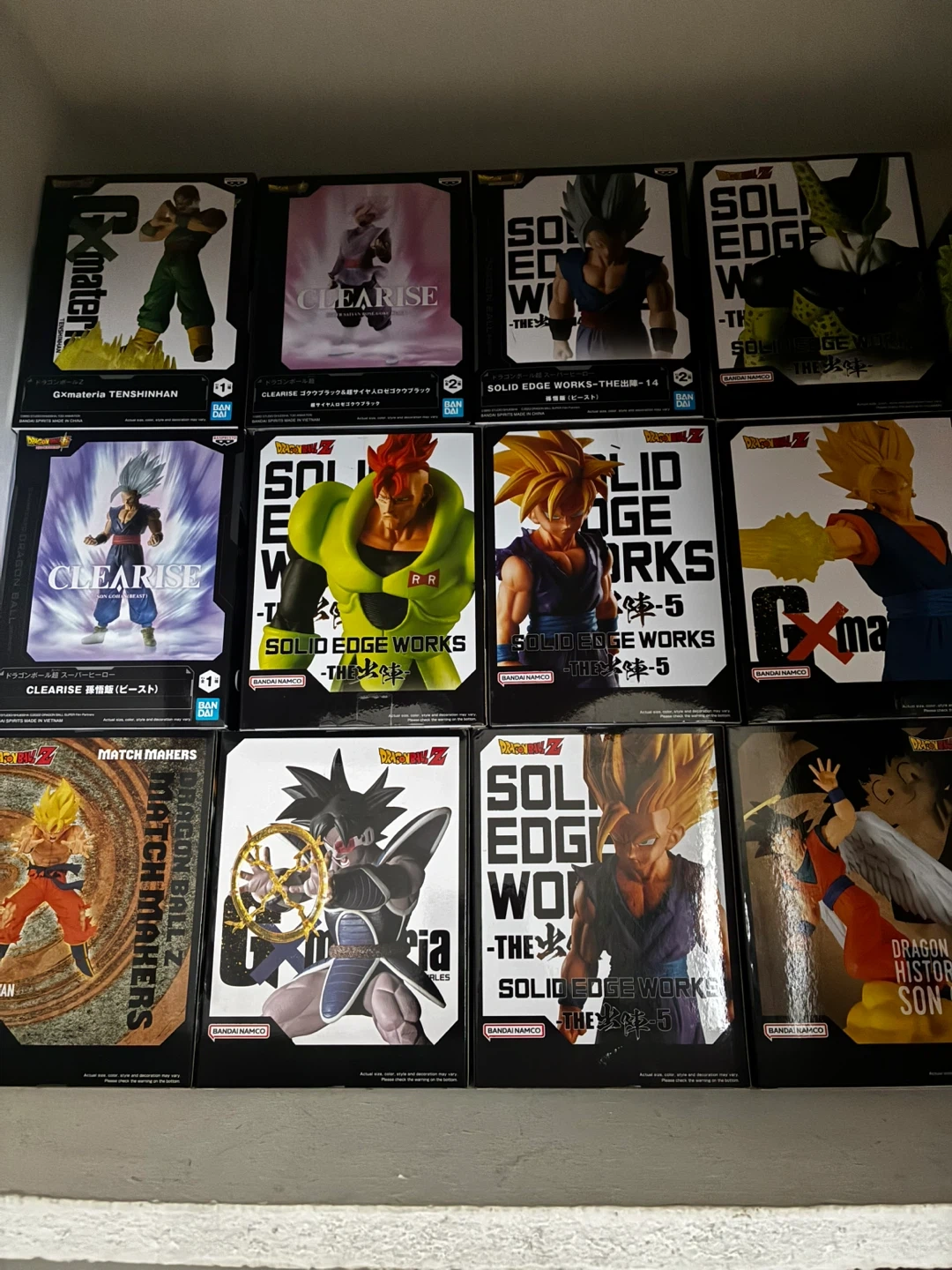 Collection of Dragon Ball Z figures from Banpresto, including Solid Edge Works, Match Makers, Limit Breaker Series, and History Box lines. Features popular characters like Broly, Goku, Vegeta, Piccolo, and more. All items appear to be new in original packaging.