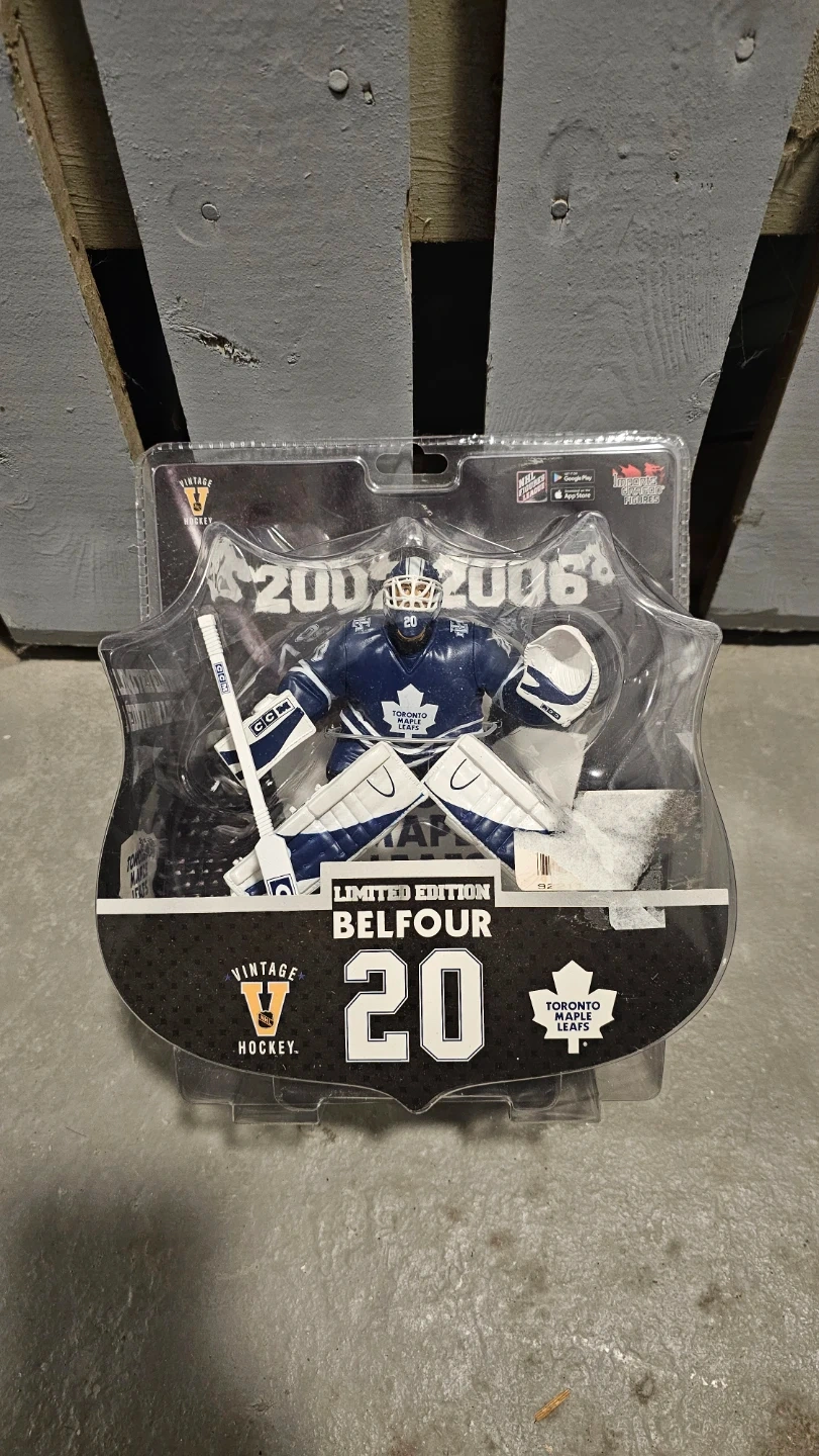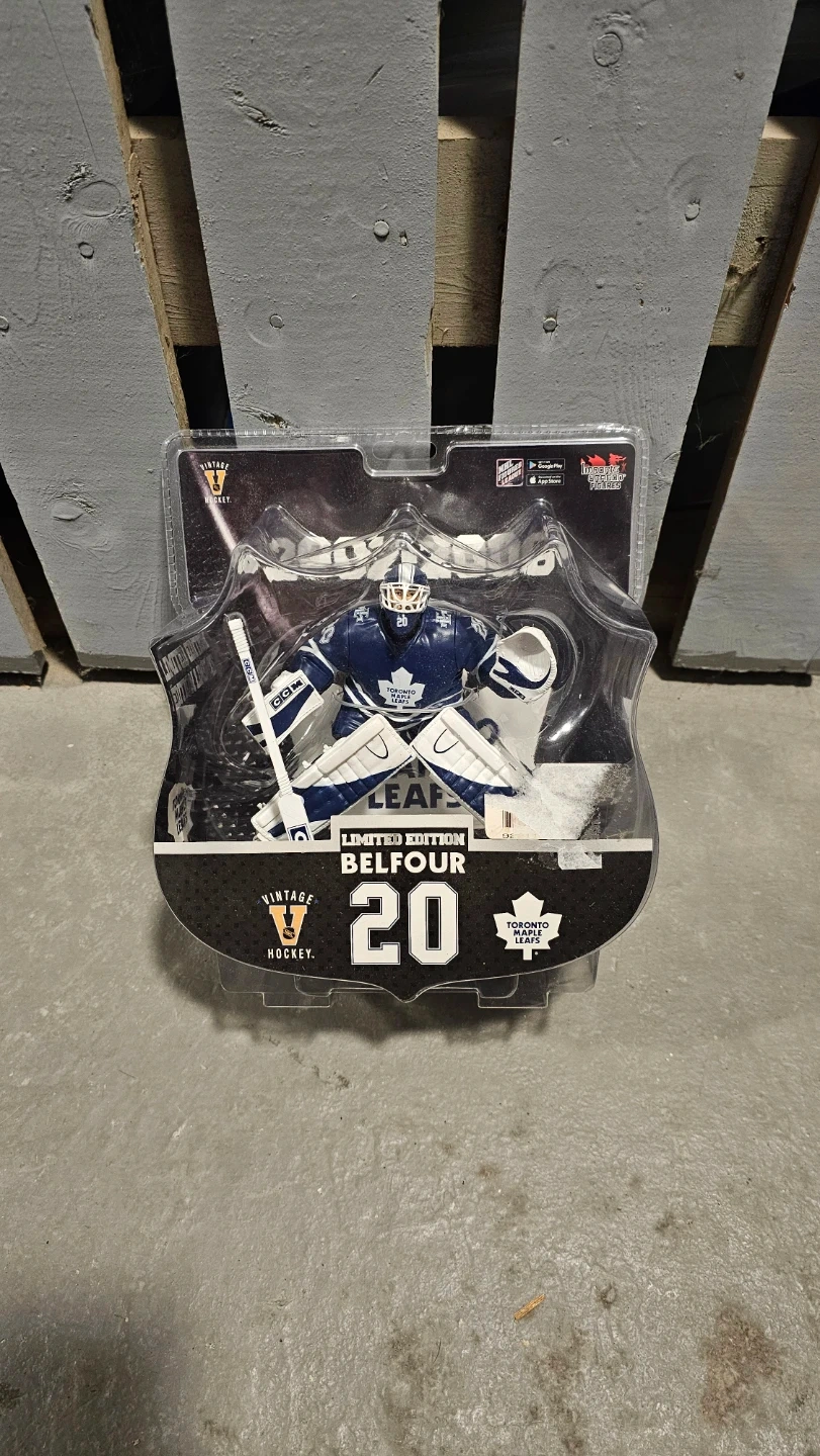 Selling a new limited edition NHL Vintage Hockey figure of Ed Belfour in his Toronto Maple Leafs gear.