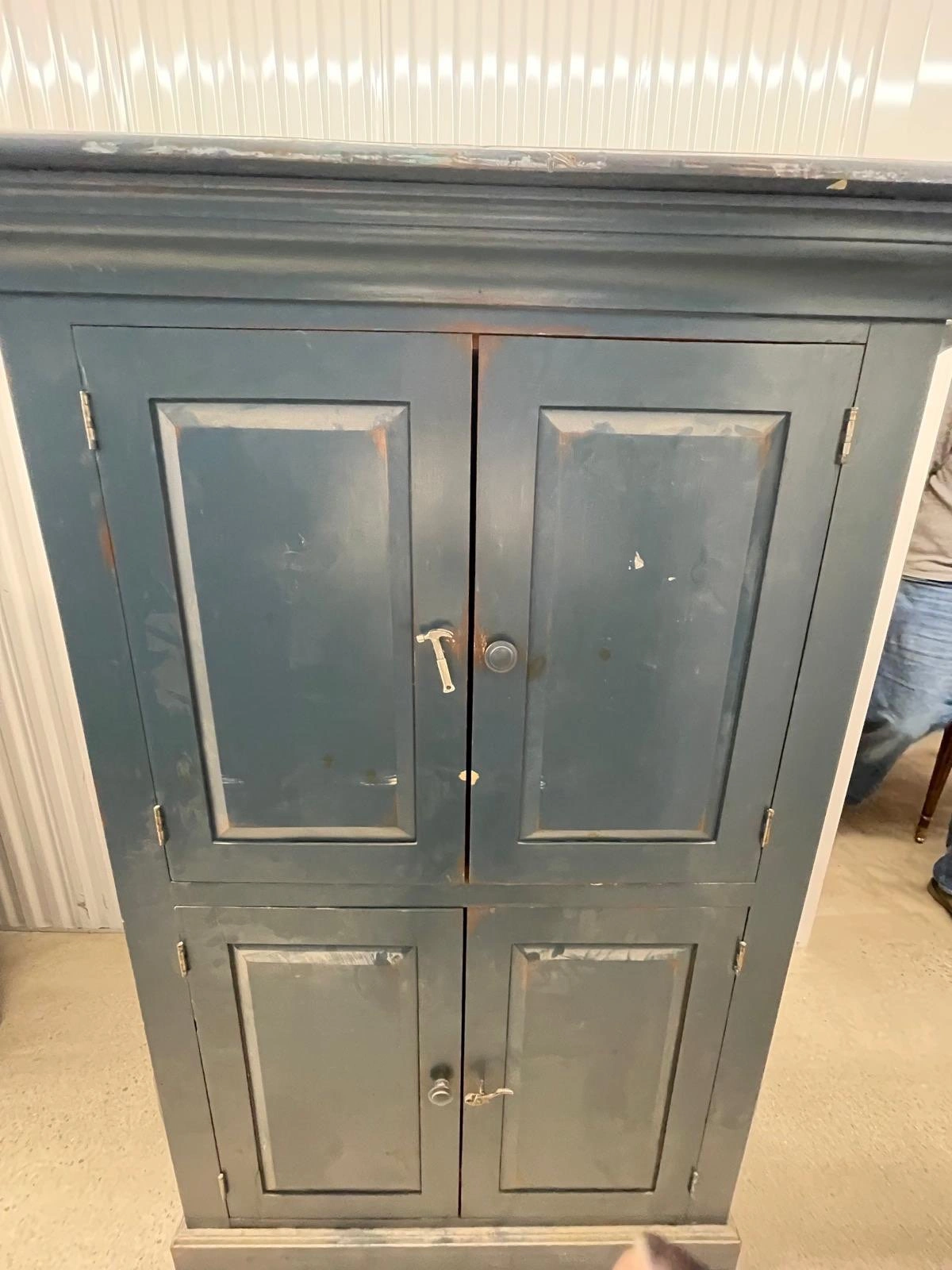 Beautiful solid wood cabinet with classic paneled doors and crown detail.
