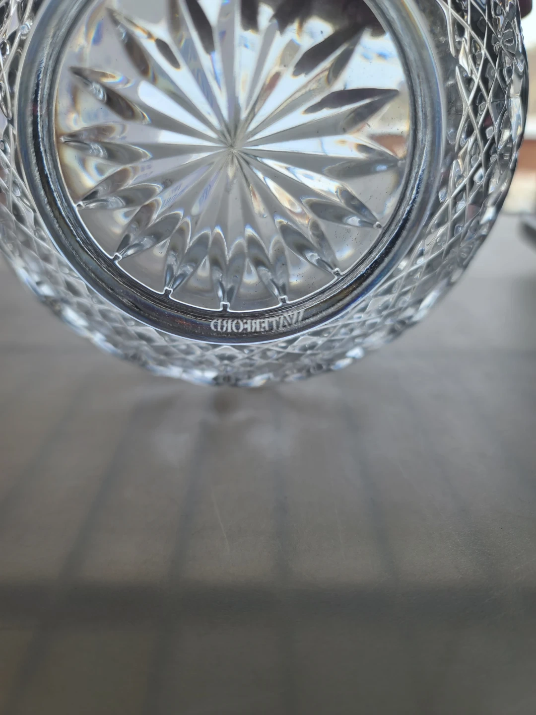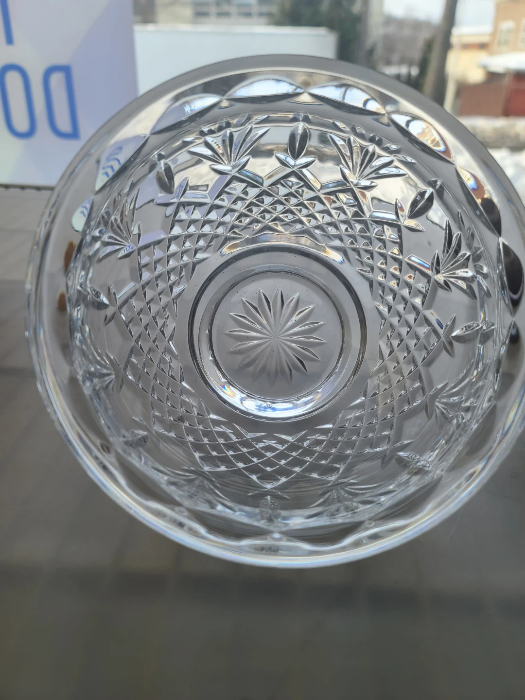 Beautiful Waterford crystal bowl with intricate diamond and fan cuts. This piece is perfect for serving or as a decorative item. Crystal material.