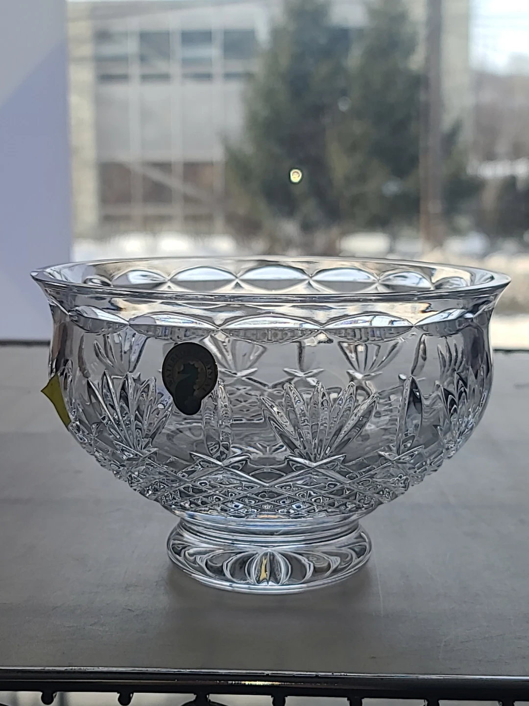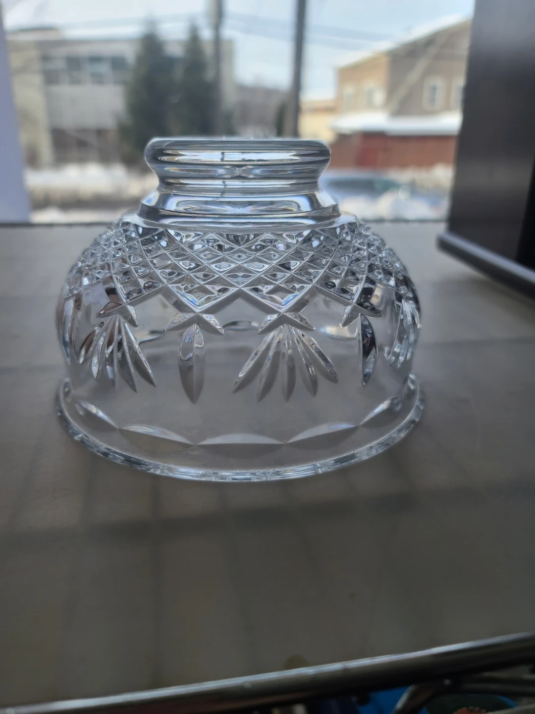Beautiful Waterford crystal bowl with intricate diamond and fan cuts. This piece is perfect for serving or as a decorative item. Crystal material.