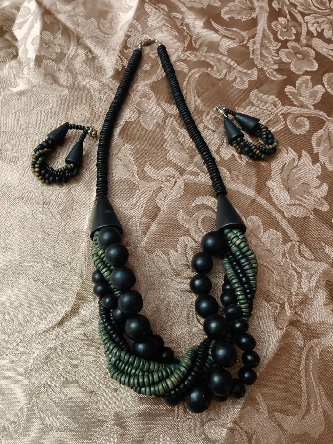 Wooden Beaded Necklaceand Earrings Set
