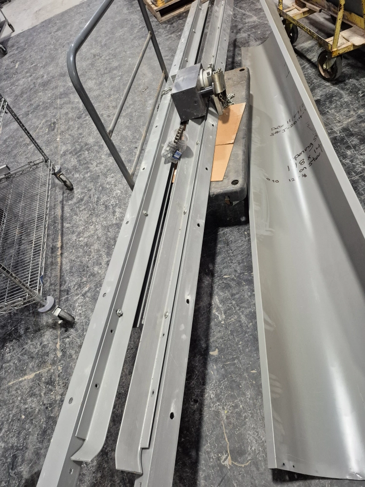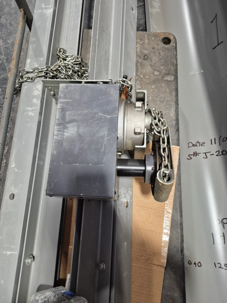 This is a Cornell automatic closing fire door. It's designed for safety and security. The door has a metal construction and comes with a retraction mechanism.
