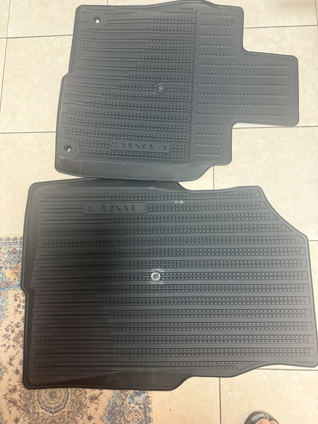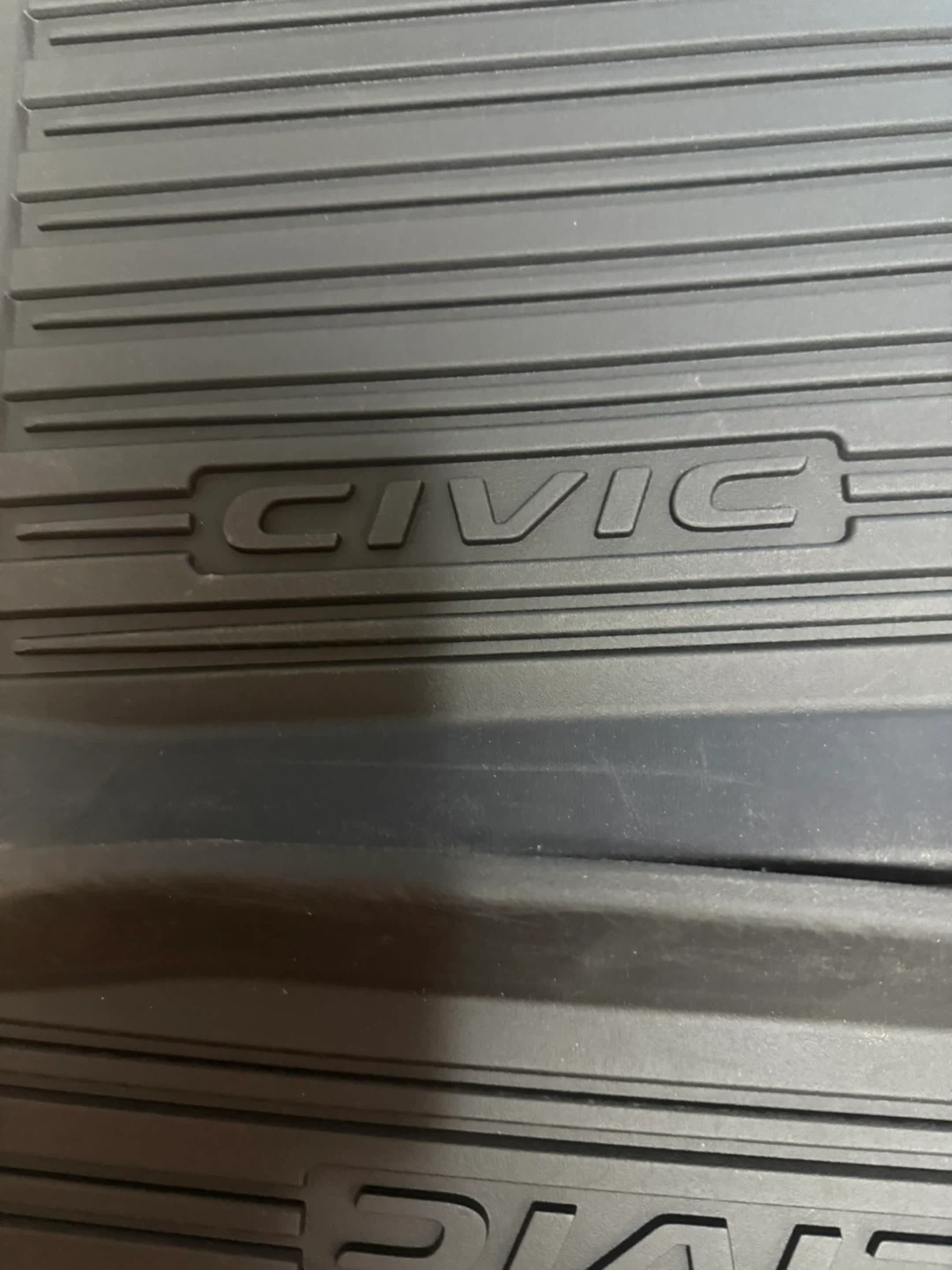 Set of black all-weather floor mats for a Honda Civic. 17 to22 fit These mats feature a ribbed design for trapping dirt and debris. They include retaining clips for secure placement. This set is designed to protect your car's interior from the elements. But my car is at 21.