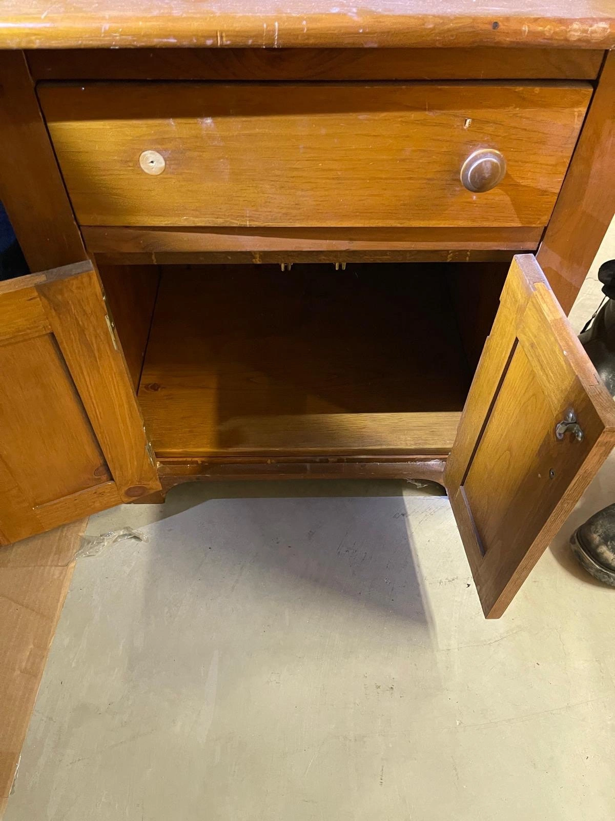 Charming solid wood cabinet featuring paneled double doors and a top drawer for additional storage. Compact in size and easy to place, making it well suited for a bedroom, entryway, living space, or as a side cabinet.