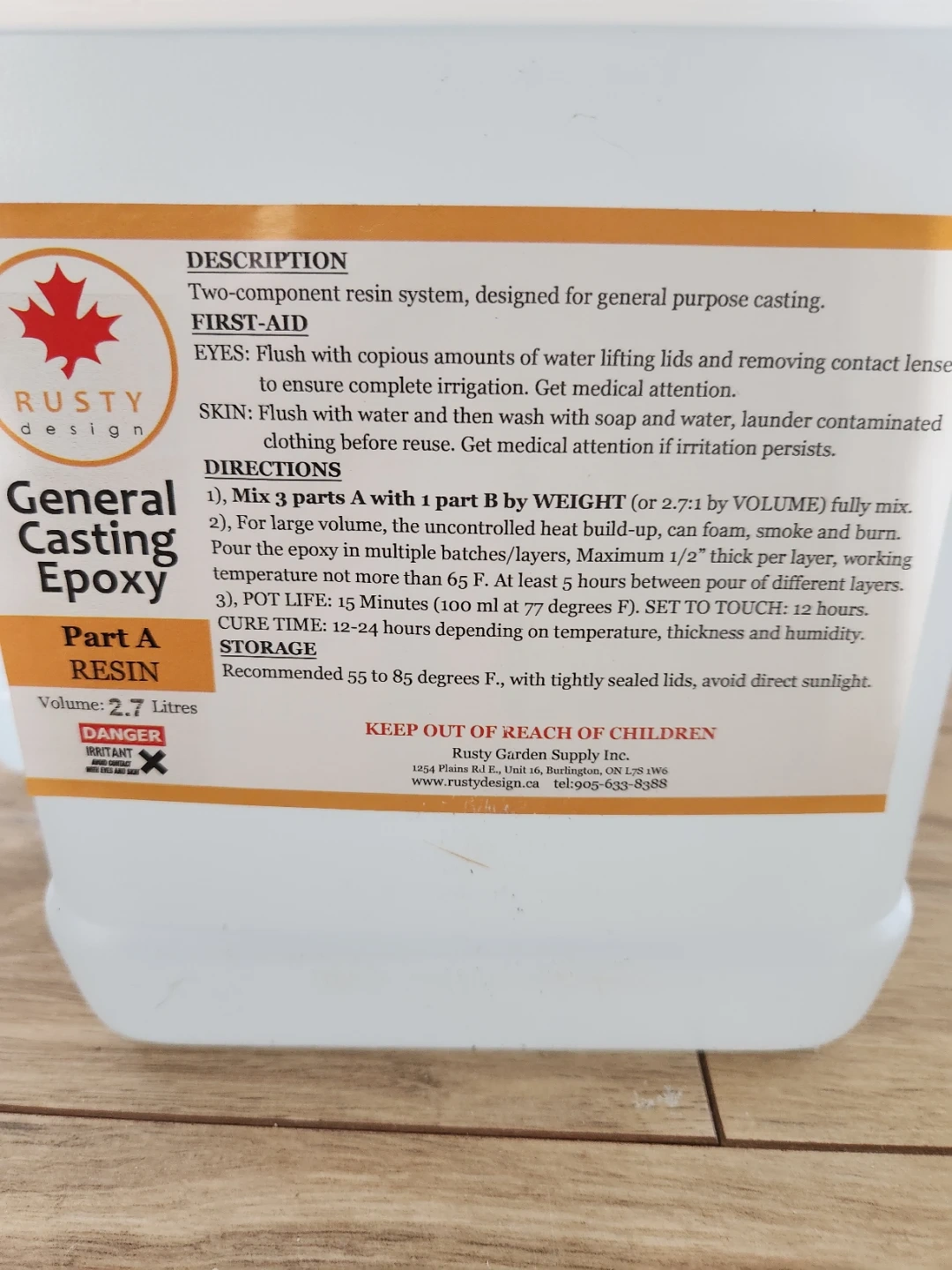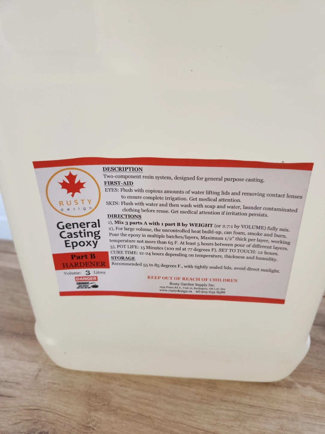 Two-component resin system for general purpose casting. Part A is a 2.7 Litres Resin 3 pcs, and Part B is a 3 Litres Hardener. Pot life is 15 minutes per container.