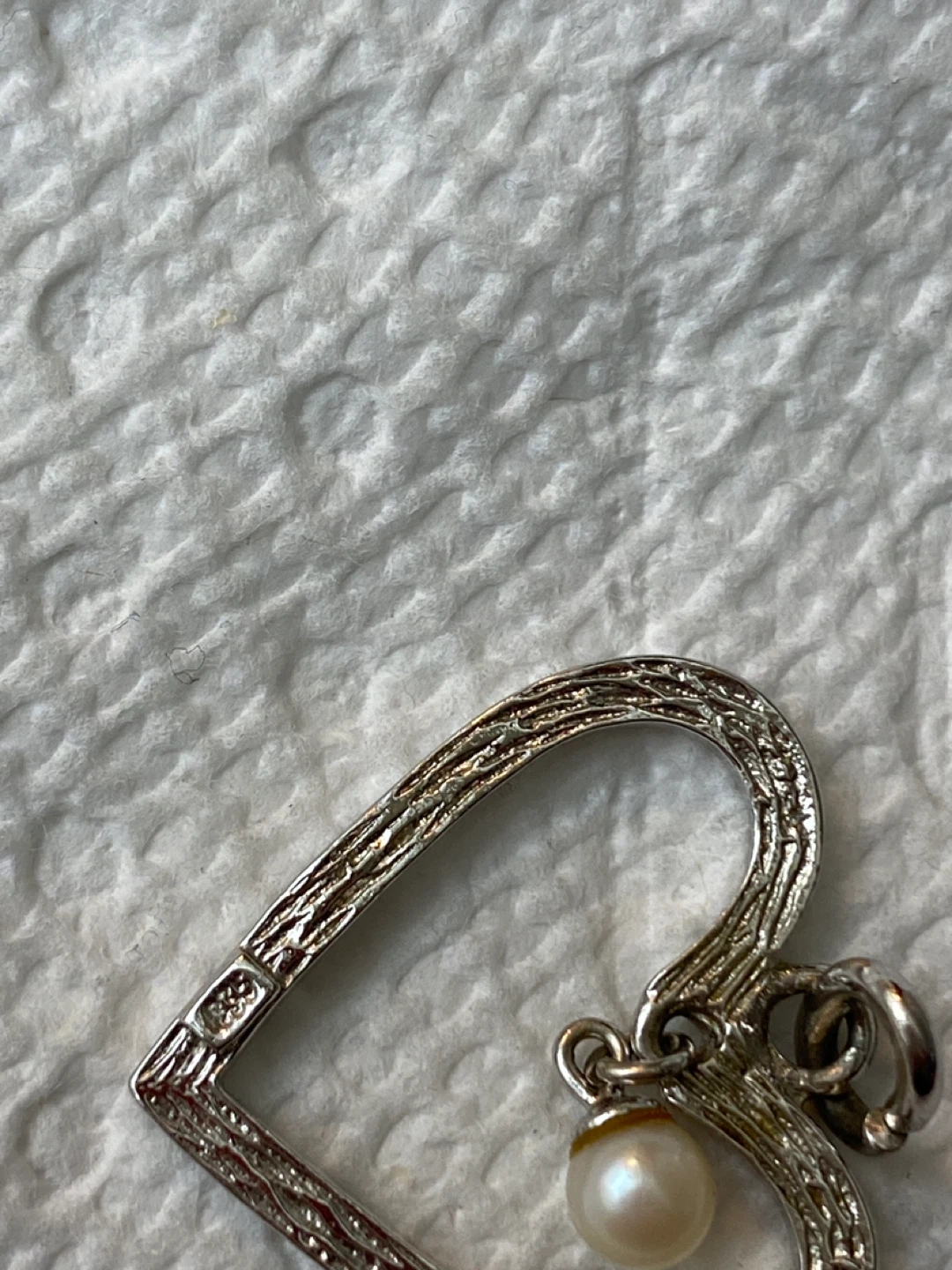 Silver Heart Shaped Pendant with Pearl 935 Silver stamped