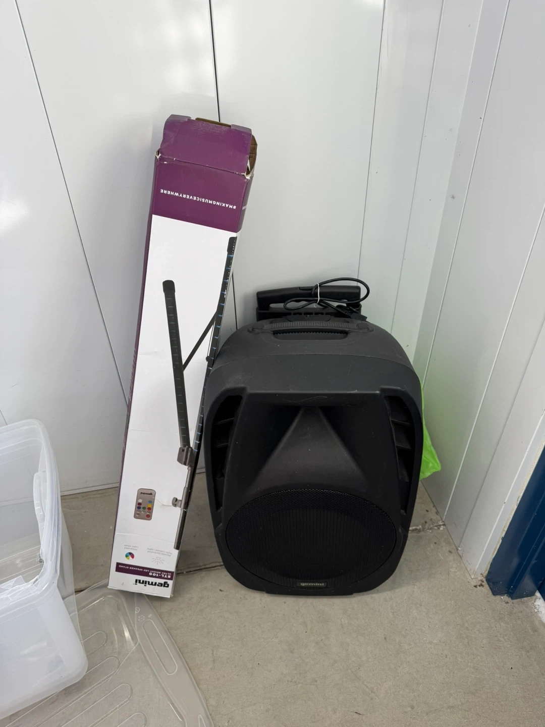 This Gemini STYL-106 portable PA speaker system comes with a light stand. It has a built-in Bluetooth receiver for wireless audio streaming. This setup is great for small gigs or events!