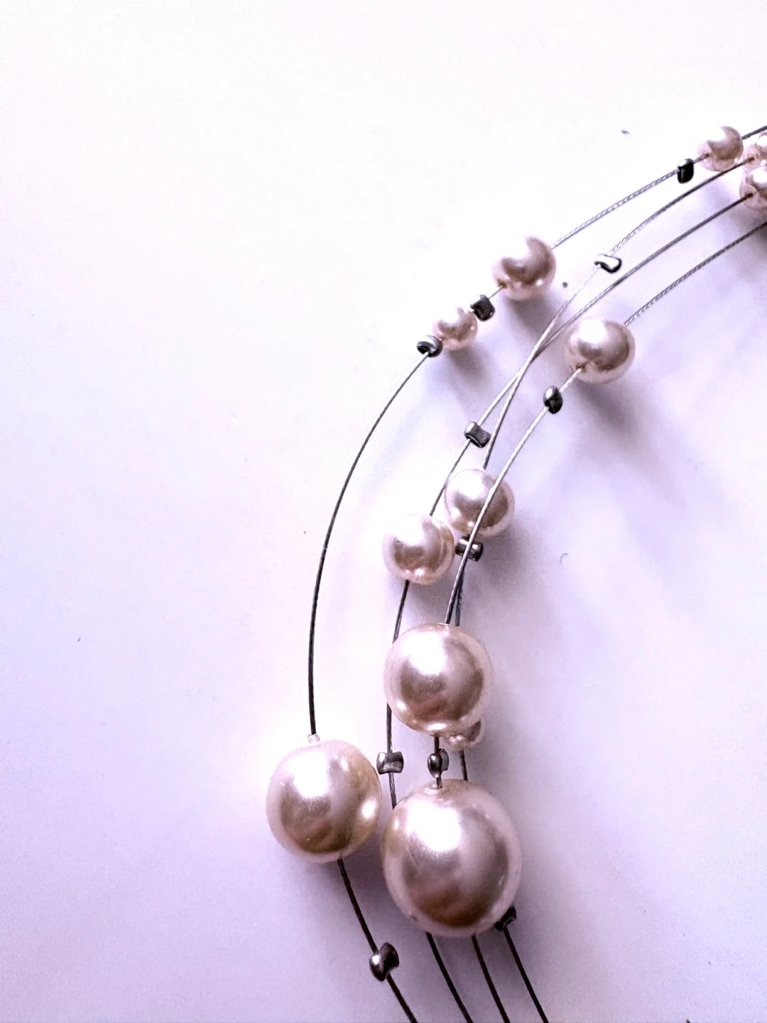 Brand new white pearl three layer illusion necklace with large bead with crystals. Boutique jewelry.