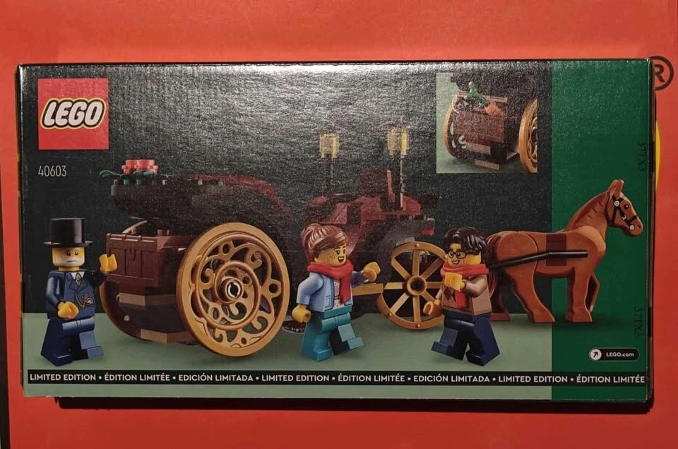 Brand new in sealed box. Pickup at 404/Finch. A festive Xmas LEGO set featuring a dark-red carriage with turning wheels, a trunk compartment, and a buildable horse. Includes three minifigures: a driver and two passengers, perfect for holiday village displays or seasonal storytelling. Compact yet detailed, this retired 2020 set is ideal for collectors and Friends fans.