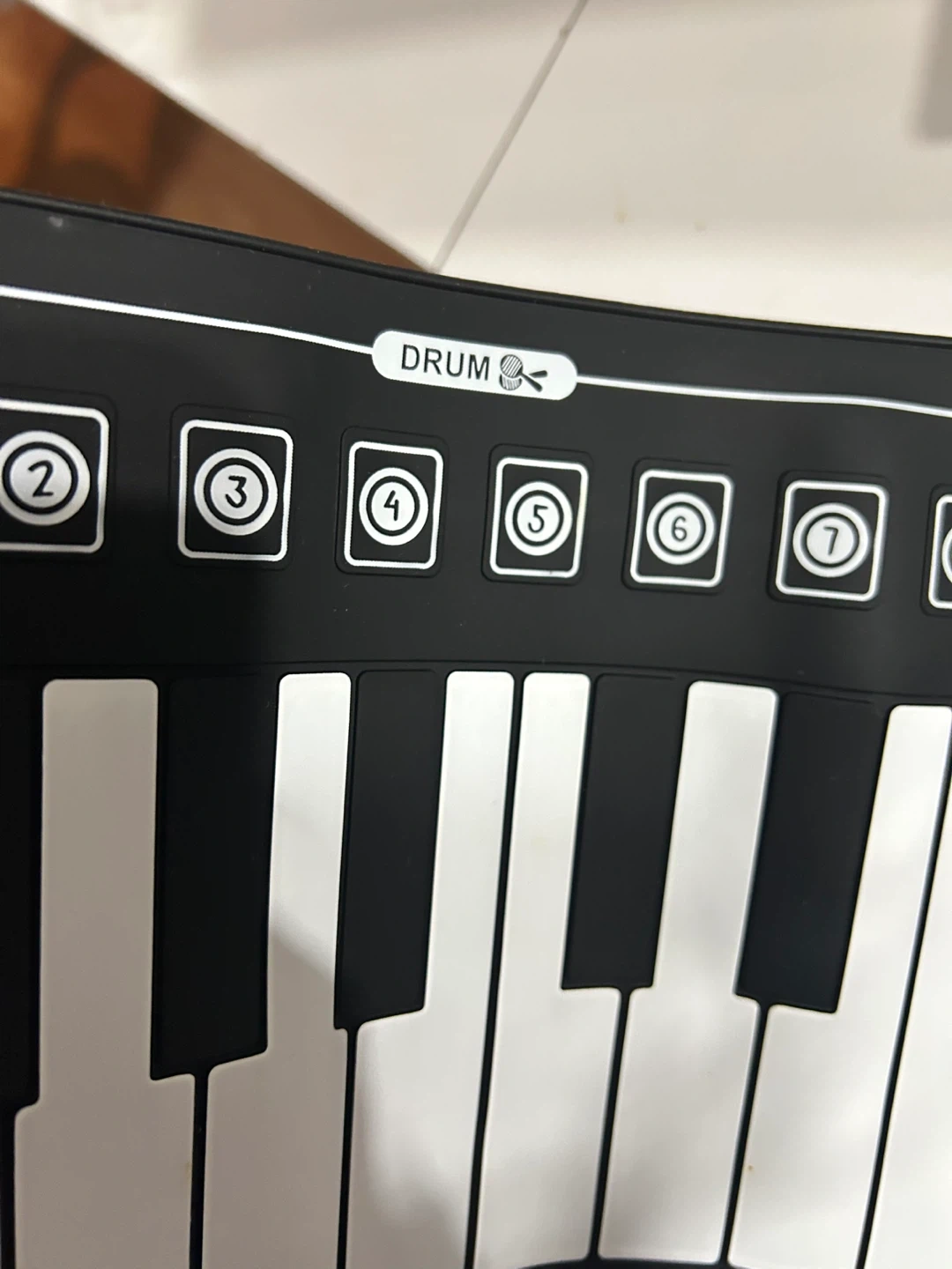 This is a roll-up electronic keyboard, ideal for on-the-go music practice. It features volume and tempo controls with a built-in speaker. A record function is also included.