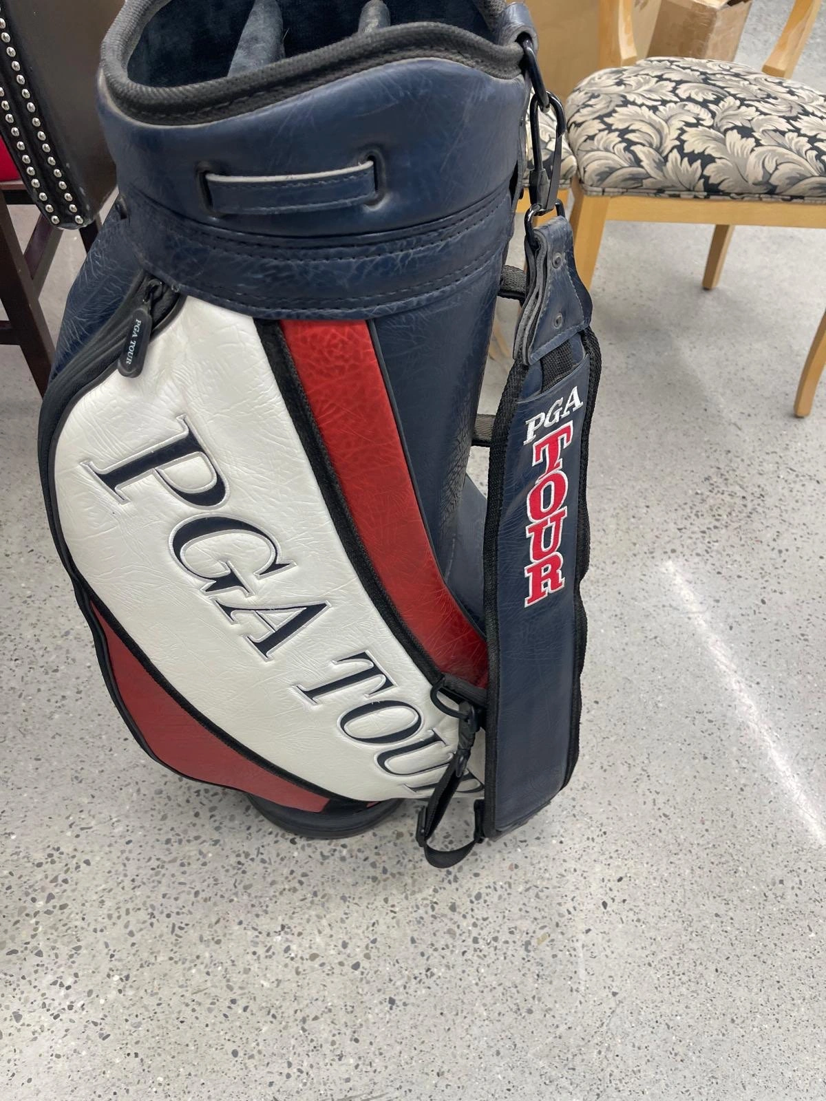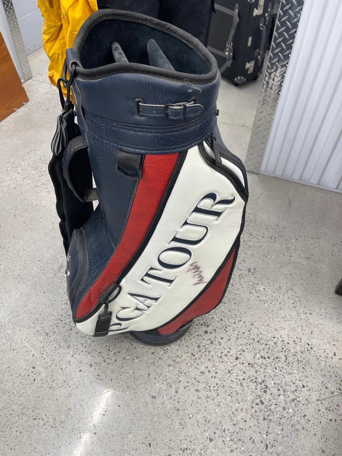 Mike Weir autograph, signed golf bag, PGA Tour bag, golf memorabilia, Canadian golf legend, Masters champion, collectible sports memorabilia, autographed PGA equipment