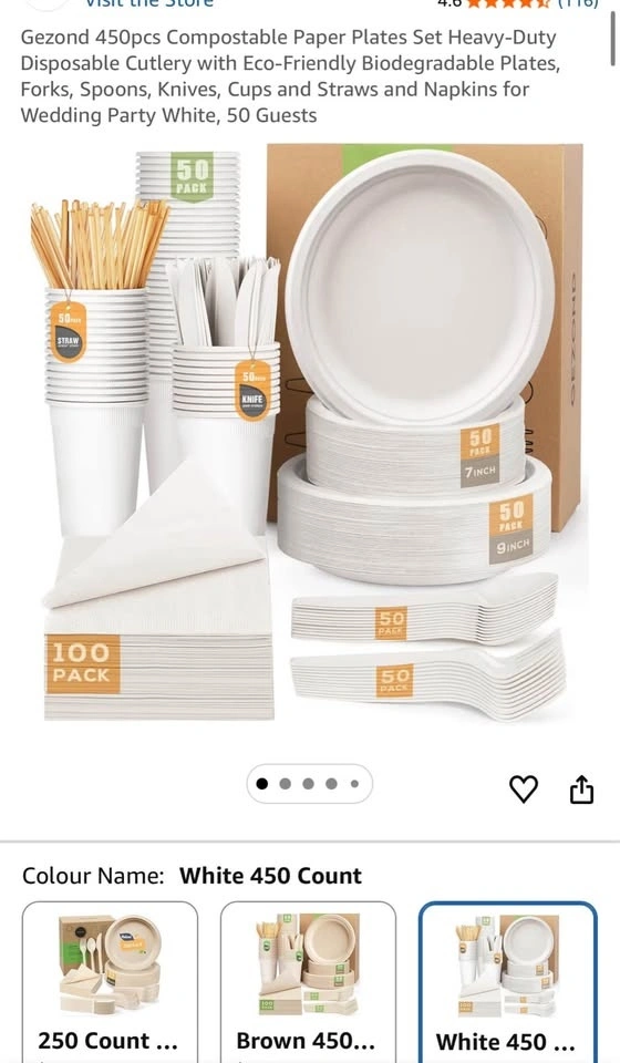 Gezond 450pc Compostable Plates & Cutlery Set