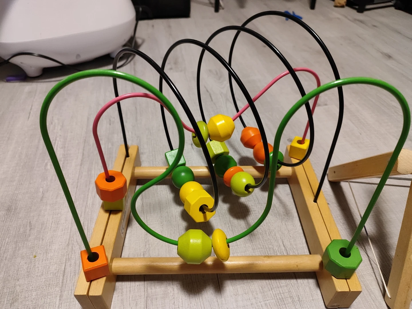 This set includes a classic wooden abacus with colourful beads and a wooden bead maze toy. Both are great for developing fine motor skills and early math concepts. These toys are made from wood and are colourful.